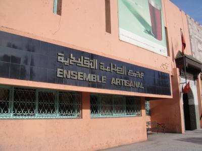各種革製品、衣料品、観光みやげなどを販売しています。マラケシュでの各種みやげがここでそろうと思います。複数店舗が入り、工房が併設されていて、職人さんが作る信用できる品を扱っているという感じがします。メディナのスークでもお土産は手に入りますが、雑然とした界隈を探して歩く手間と、観光地化されていて値段も交渉次第。客引きなどもうるさいです。伝統工芸館では落ち着いて買い物ができます。クレジットカードもここでは使ってみました。