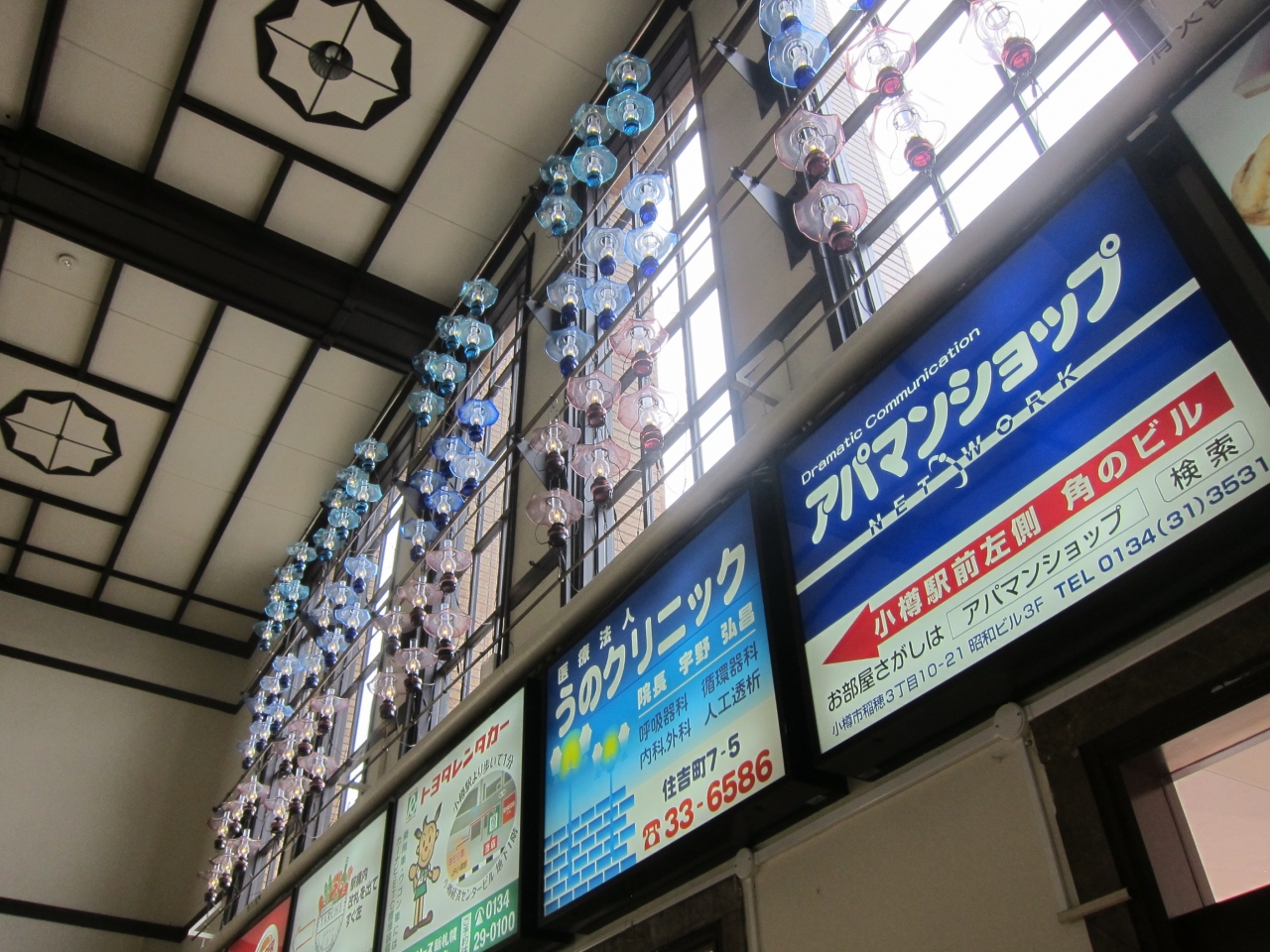 運河の街、小樽の観光の拠点です。札幌までの通勤圏で朝夕は通勤客でも混みあいます。有名な運河は、駅前の通りをまっすぐ1kmほど坂を下ったところ。少し離れていますが、バスでも行けます。市内各所をバスで回るのであれば、\750円の1日乗車券などもあります。駅前にはバスターミナルがあり、小樽市内各所は勿論、札幌までの高速バスや積丹半島、岩内などへも行くことができます。キロロへは季節限定となります。列車の方は、札幌までは普通列車、また、新千歳空港まで行ける快速エアポートが頻繁に出ています。一方、反対方向の倶知安、ニセコ、長万部方面は1~2時間に1本程度なので利用には予め時刻表をよく確認しておく必要があります。駅舎側の4・5番線ホームは裕次郎ホームの愛称がついています。駅にはキオスクのほか、パン屋などの店舗が入っていて食べ物の調達に便利です。待合室もありますが、駅の規模の割に小さめです。その代わりでしょうか、大きめのロッカースペースとトイレがありました。
