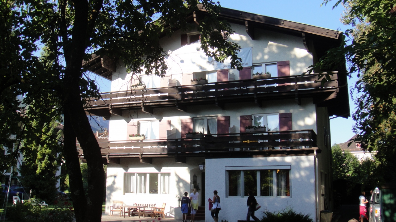 ガルミッシュ・パルテンキルヒェンの駅の東口から200~300mほど。駅から近い割安の宿です。その分、接客応対はシンプルでしたが、愛想よく対応してくれました。各部屋には屋外デッキもあり、清清しい空気の中、テーブル席に座って過ごす朝のひとときはとても気持ちよかったです。値段、ロケーションの割には部屋も広く、割安だと思います。駅に近いため、登山電車を利用した朝早くのツークシュピッツェ登山などに便利だと思います。