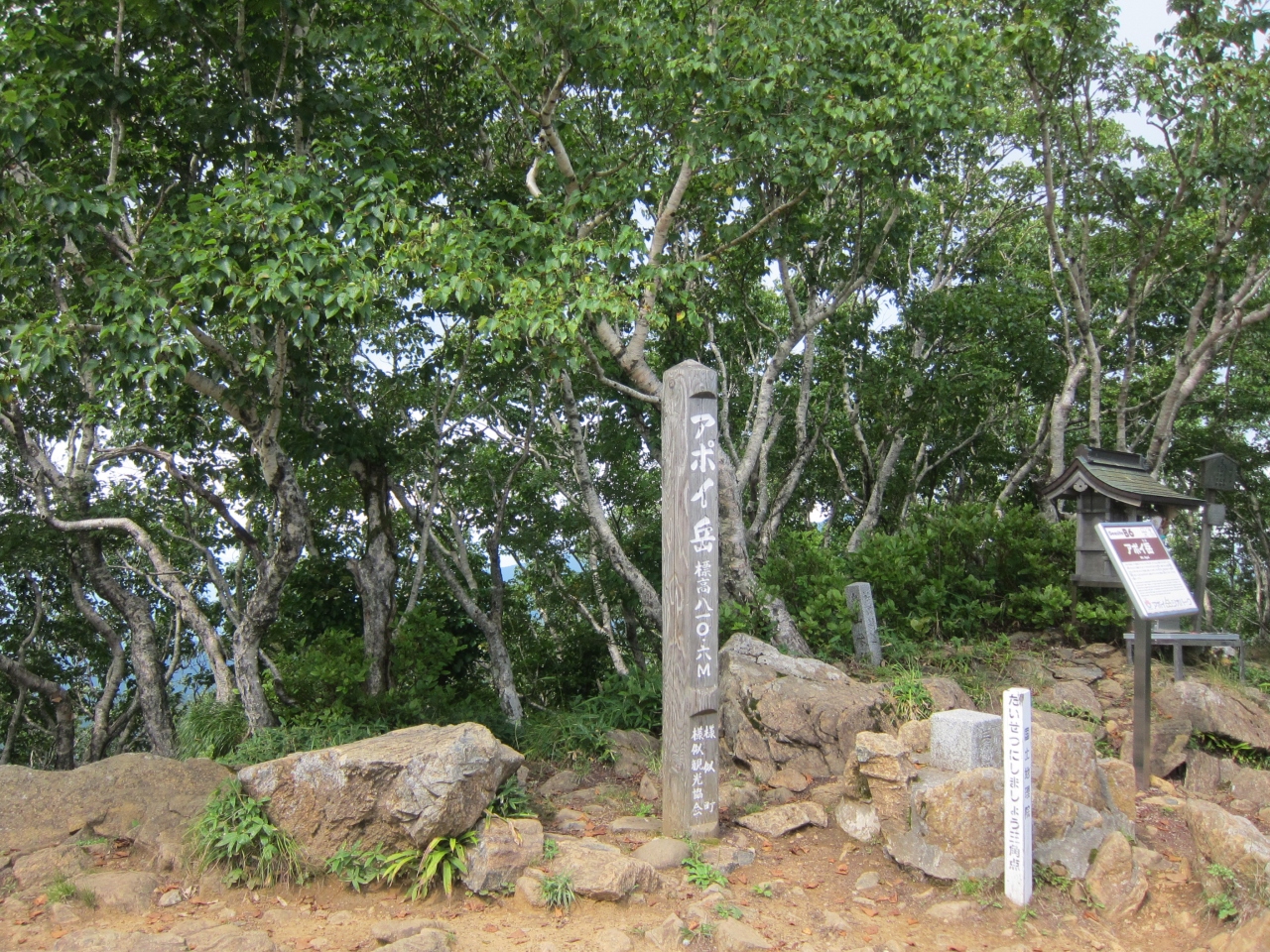 アポイ岳に登りました。標高810m。親切に休憩所や説明看板(自然保護の川柳までありました)もあちこちに立っている入門的な登りやすい山です。しかし甘くみてはいけません。そして熊鈴は必須です。北海道の山は利尻や礼文などの離島を除いて熊は必ずいます。札幌市の中心部、中央区の住宅街にも出るほどなのですから…。また、8月の終わりだったので花は少なかったようです。登山道はキャンプ場の奥から入っていき、1合目~5合目までは森の中です。1合目、山頂まで3.8kmの表示がありました。平地の3.8kmとは異なるので要注意です。小さな沢をいくつも越しますが、エキノコックスを考えると飲む気はしません。山小屋のある5合目は標高365mです。半分の高さもありません。ここから7合目まで傾斜がきつくなります。森が途切れるので、夏の炎天下はきついかも。そして7合目で馬の背です。山の肩みたいなところまで来た感じです。様似のエンルム岬など日高の海岸線が美しく見えます。しばらくハイマツの茂る高低差の少ない道が続きますが、8合目からは山頂までの峰にとりつきます。再び傾斜がきつくなりますが、もうひと頑張りです。石に表示が書いてある9合目をいつの間にやら越すと、ダケカンバ茂る山頂です。一旦、森林限界を超えてハイマツ林があり、その次にダケカンバ林があるというのは普通、見られない樹層だそうです。登っていても頂上だけ森になっているのは変な感じがしました。ハゲている人が妙な部分だけはフサフサだったりみたいな…。ただ、炎天下の中ではとてもありがたかったです。なお、登る前後で登山道の入口の所にあるジオパークに寄るといいです。アポイ岳の豆知識をいろいろ入手できます。山は地球内部のマントルがここにだけに露出したものらしいです。マントルの岩の上を登っていたのですね…。