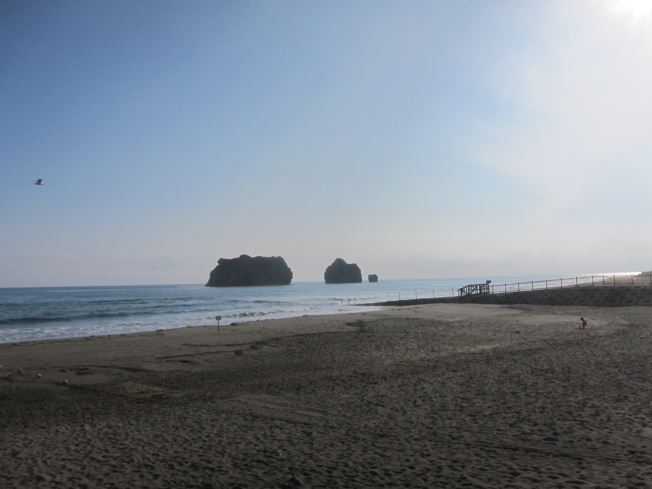 様似の海水浴場です。様似駅や町役場のある中心部からは2kmほど浦河寄り(西)に離れていますが、比較的整備された海水浴場です。親子岩の眺めがよく、夕陽の時などはきれいです。付近は海水浴場のほか、キャンプ場なども整備された公園となっており、広い無料の駐車場もあります。管理事務所的なセンターハウスがあり、シャワーや男女別の更衣室、無料のコインロッカーがありました。