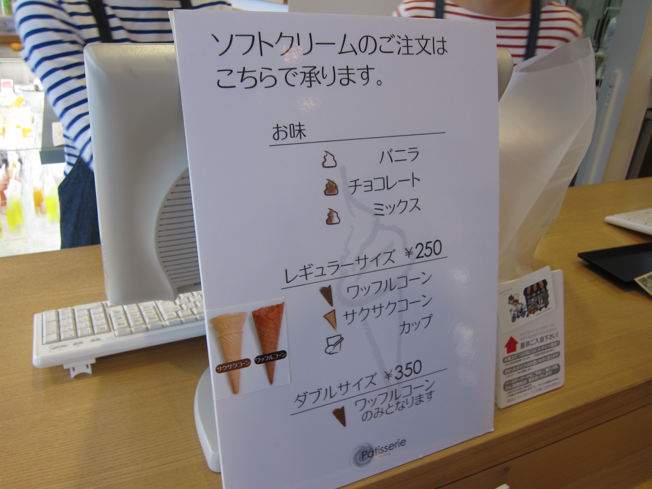 各種ケーキを置いています。店の奥で食べることもできるようです。今回はソフトクリームをいただいたので、ケーキの味は分かりませんが、ケーキは、見た目は少し小さいかなと思いました。また、個人的な好みで、キウイのパンナコッタやマンゴーのものが気になりましたが、ケーキメニューは他の店に比べて色鮮やかなフルーツなどの乗ったものが目立つ印象でした。ソフトクリームの方はバニラを頼みました。じっくり作りこんだ生乳ベースな感じはしますが、一口で生乳と分かる風味と甘さは押さえ込み、洗練され、落ち着いた食べやすい仕上がりになっていると思います。店舗は星置駅近くの下手稲通りに面しています。休日の午後に行きましたが20台近く止まれる駐車場も結構埋まっていて混んでいました。