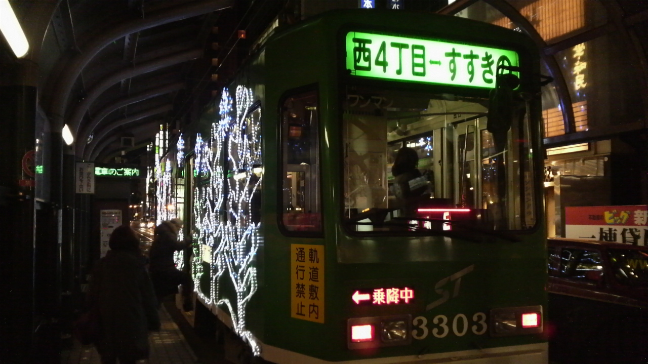 大通りの西4丁目から札幌の中心部を一周して、すすきのまで8.4kmの距離を結んでいます。途中、藻岩山最寄のロープウェイ入口駅がありますが、ほか、目立った観光名所は無いと思います。生活路線のような気がします(札幌市中央図書館や中央区役所、ハローワークなどがある)。ササラ電車で有名なので、札幌に来て市電を体験してみたいなら利用してみるとよいと思います。ほか、沿線の住宅街にはスープカレーやラーメンの店などが点在しているので、バスでアクセスしにくい場所の場合は市電の利用が便利です。SuicaやKitacaなどの全国の鉄道で主要なICカードが使えます。料金は1駅でも最後まで乗っても一律\170円で、降りる時に支払います。ただし、土日休日の場合はフリーパス(市電のみ300円)がありますが、平日の場合でも市電のほか札幌市内の地下鉄・バス込み1000円の共通1Dayカードというのもあります。