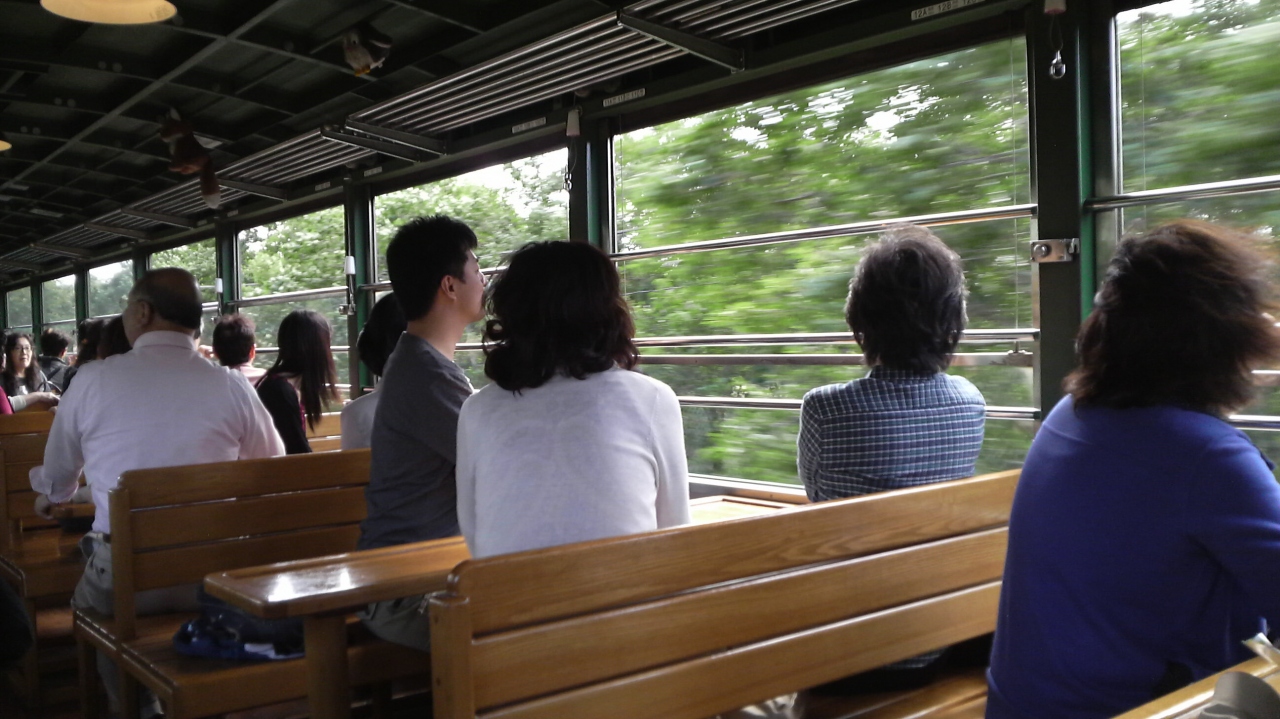 列車は窓が広く開放された展望車ですが、自由席のうち1両だけは窓の狭い気動車型客車です。寒いときや、風の強いのが気になる場合は客車に乗った方がよいかもしれません。