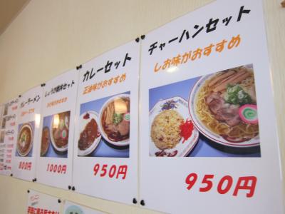 塩ラーメンがおいしいと思います。ほかで食べる塩ラーメンは味が薄い感じがしますが、ここのはコクがあるという感じがしました。その分、味が濃いですが、決してしょっぱい訳ではありません。更にボリュームを求めるなら、チャーシューの塩にするといいのではないでしょうか。味噌も頼んでみましたが、こってり好きには、味のハーモニーなどがもうひと息かなという感じです。やはりここでは塩を食べておきたいところです。チャーハンやカレー、しょうが豚丼とのセットメニューなどもありました。
