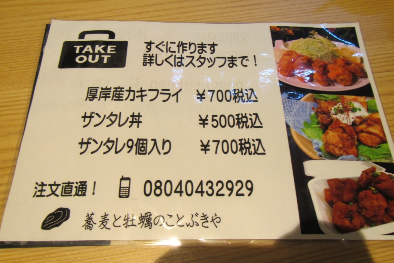 お店の名前に入るだけに、美味しそうな牡蠣メニュー(蒸し牡蠣や牡蠣蕎麦など)があり、牡蠣はなかなか捨てがたいのですが、ここではザンタレ丼が乗っているザンギがデカくてお値段に対してコスパが良いと思いました。
