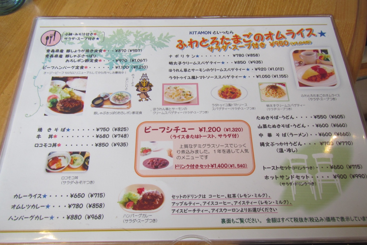 弘前公園の北側の門、亀甲門を出たところにある、やや家庭的な雰囲気とメニューのレストランです。