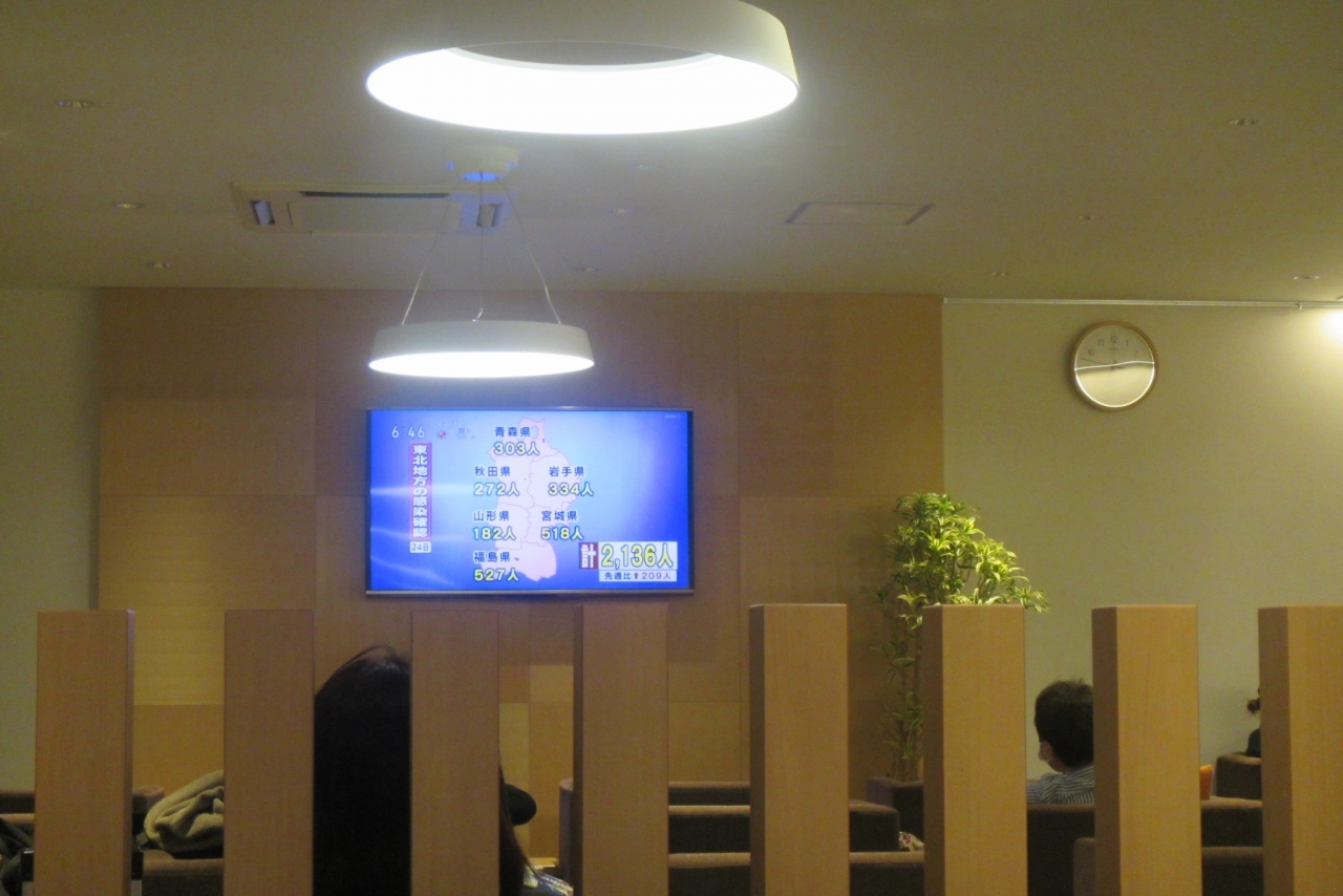 公称54席のソファー席とのことですが、現在、新型コロナ対策のため間引きで使えない席もあって、それほど多くない印象でしたが、近隣の空港と比べると秋田空港のラウンジよりは断然広いです。