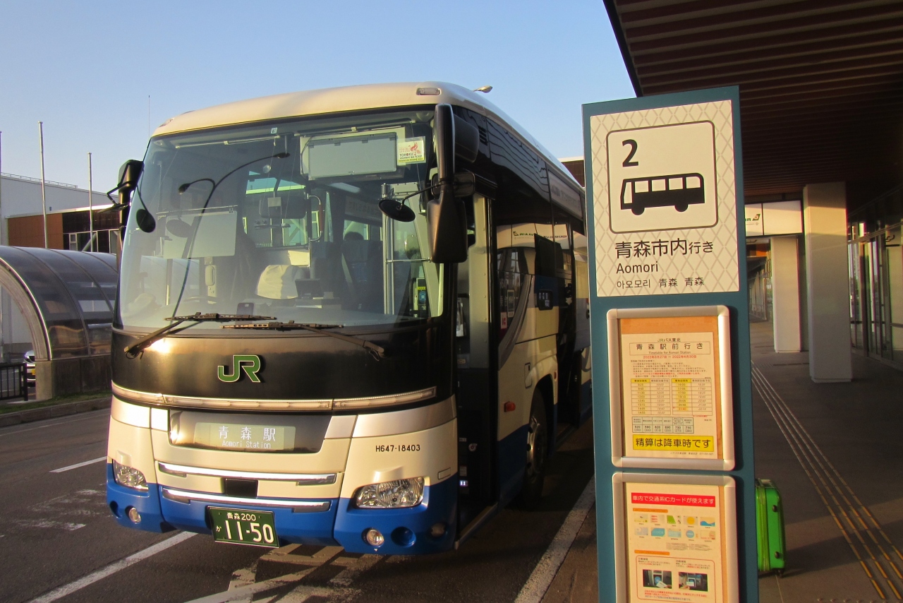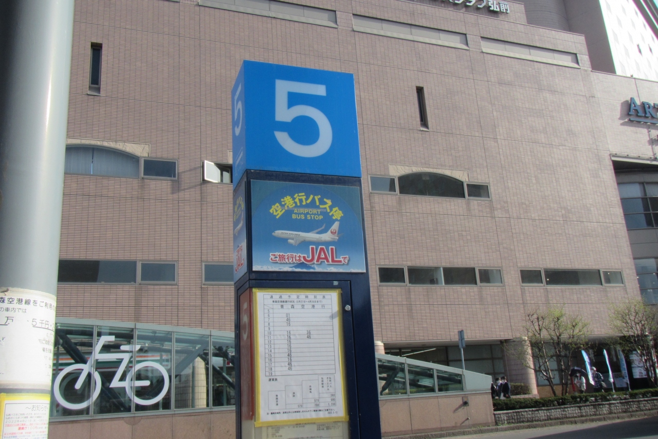 青森空港と、青森駅または弘前駅(弘前バスターミナル)を結ぶ2つのルートがあって、それぞれ空港の1階到着口を建物外に出たところにバス乗り場、1階空港カウンター前の建物外に到着バス停があります。