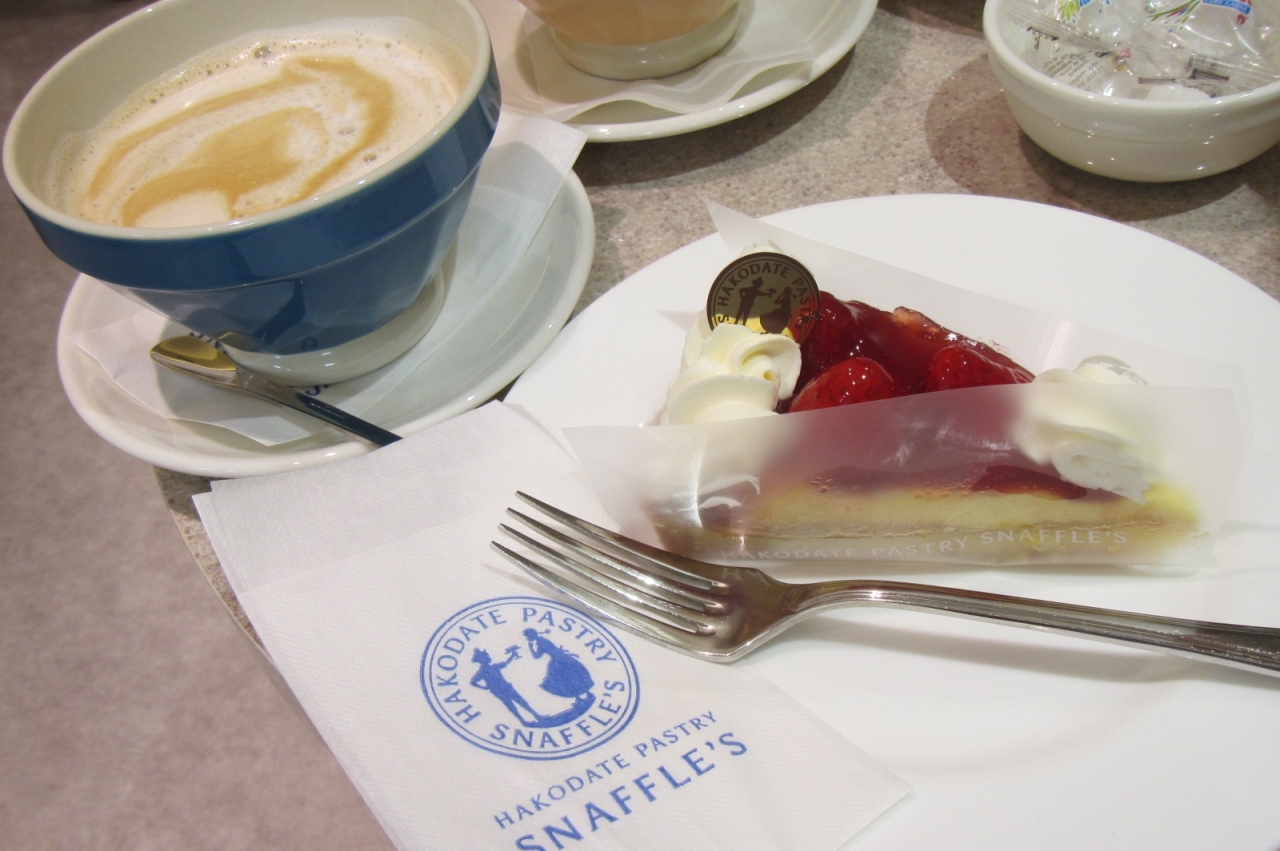 函館のスイーツ店、スナッフルスのお菓子、ケーキなどを売っていて、喫茶コーナーもあります。