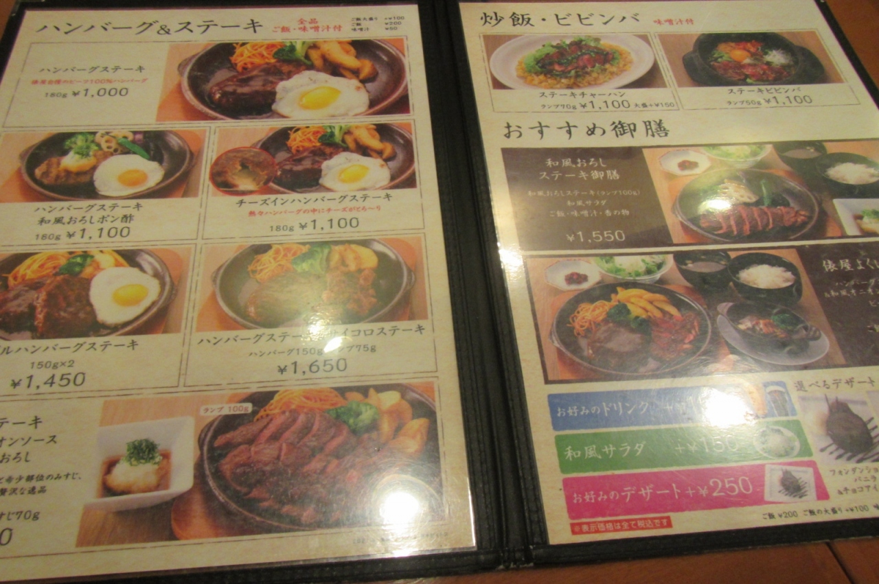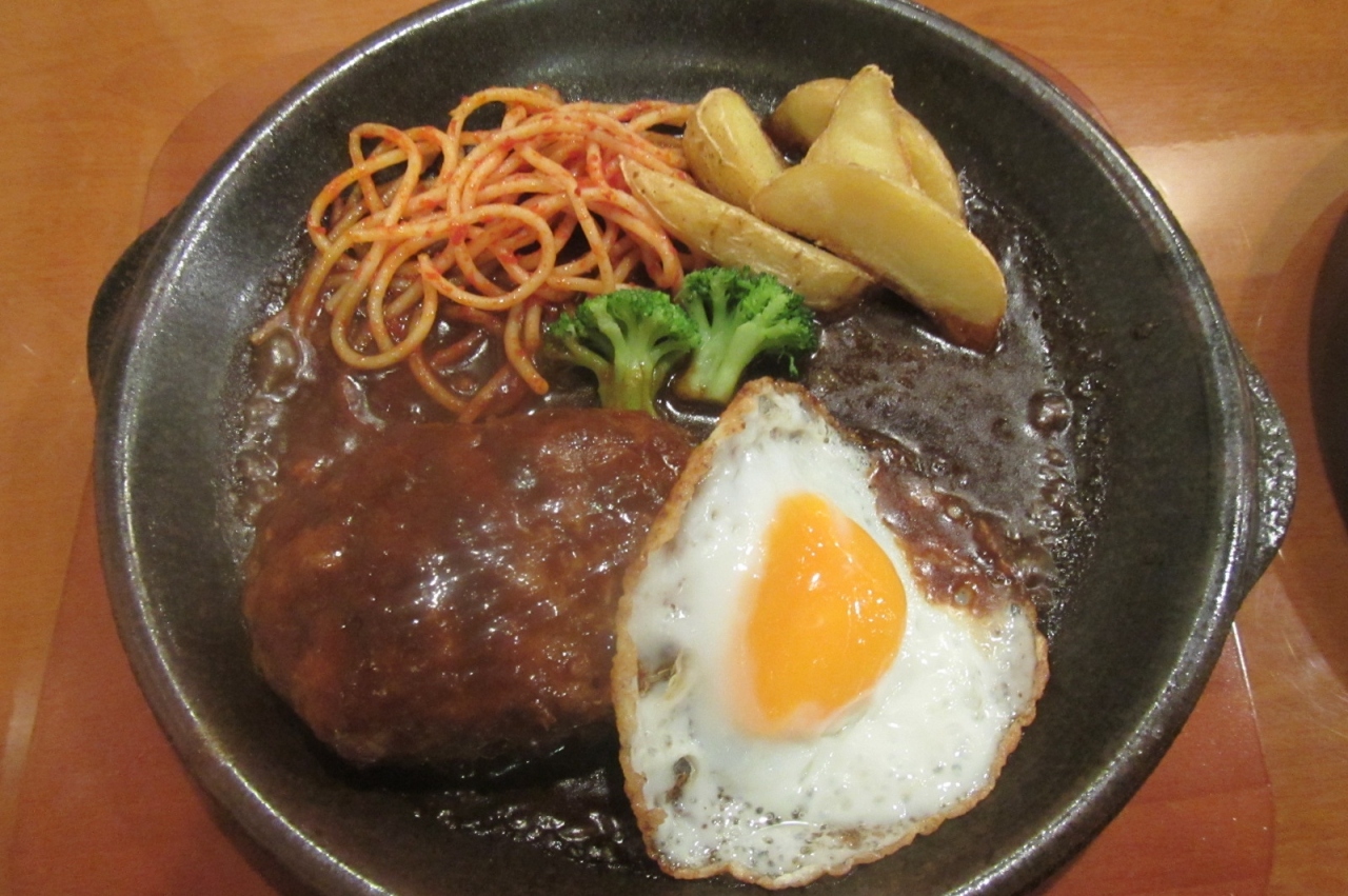 チーズ、和風ソースなどの各種ハンバーグにステーキなどをご飯・味噌汁付きでいただくことができました。- 旅行時期