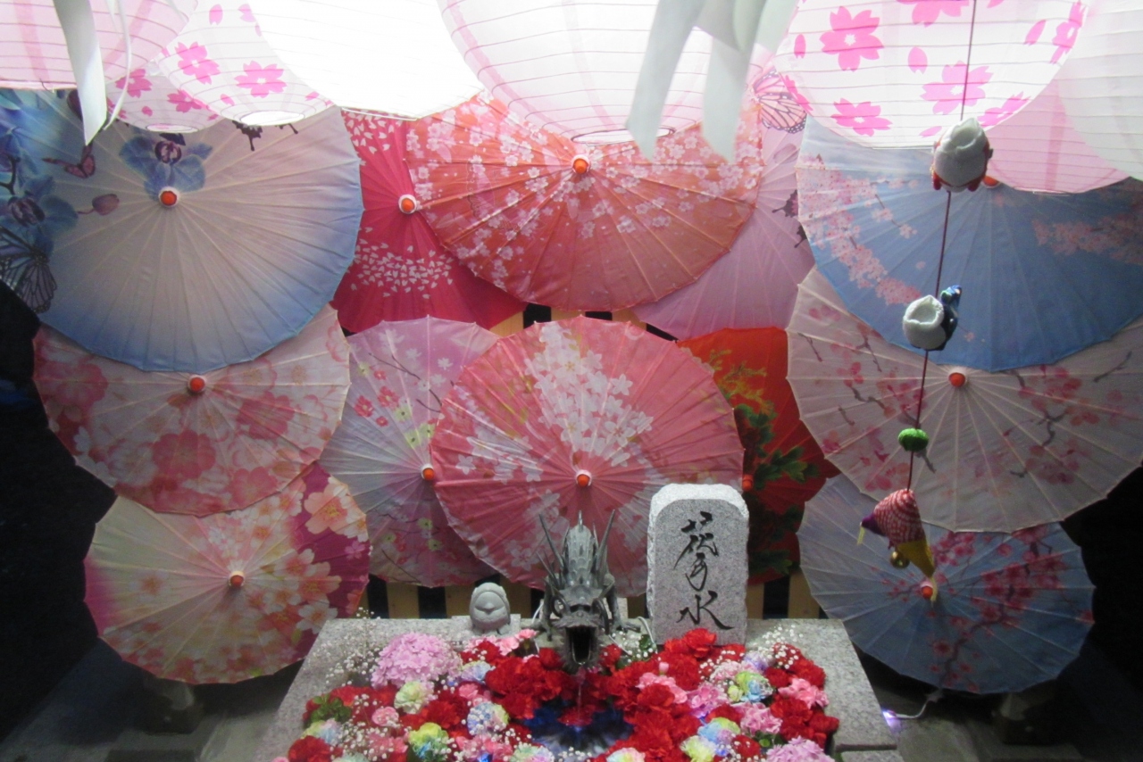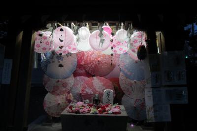 また、参道脇の花手水も夜間は片付けられているようでした。
