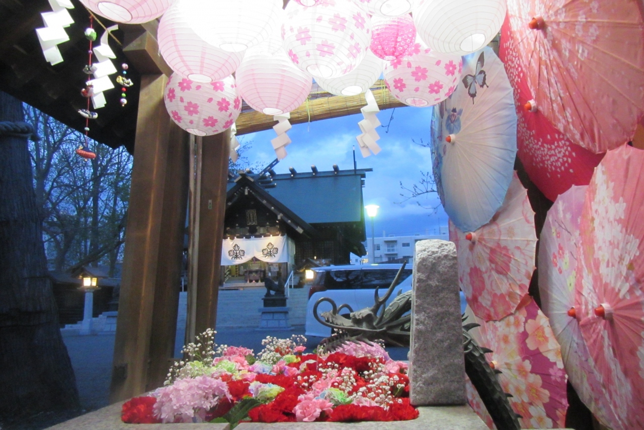 令和4年(2022年)4月29日~5月5日、札幌市およびその近郊の主要な神社で第3回の花詣が催されましたが、発寒神社においては5月1日~5月5日でした。