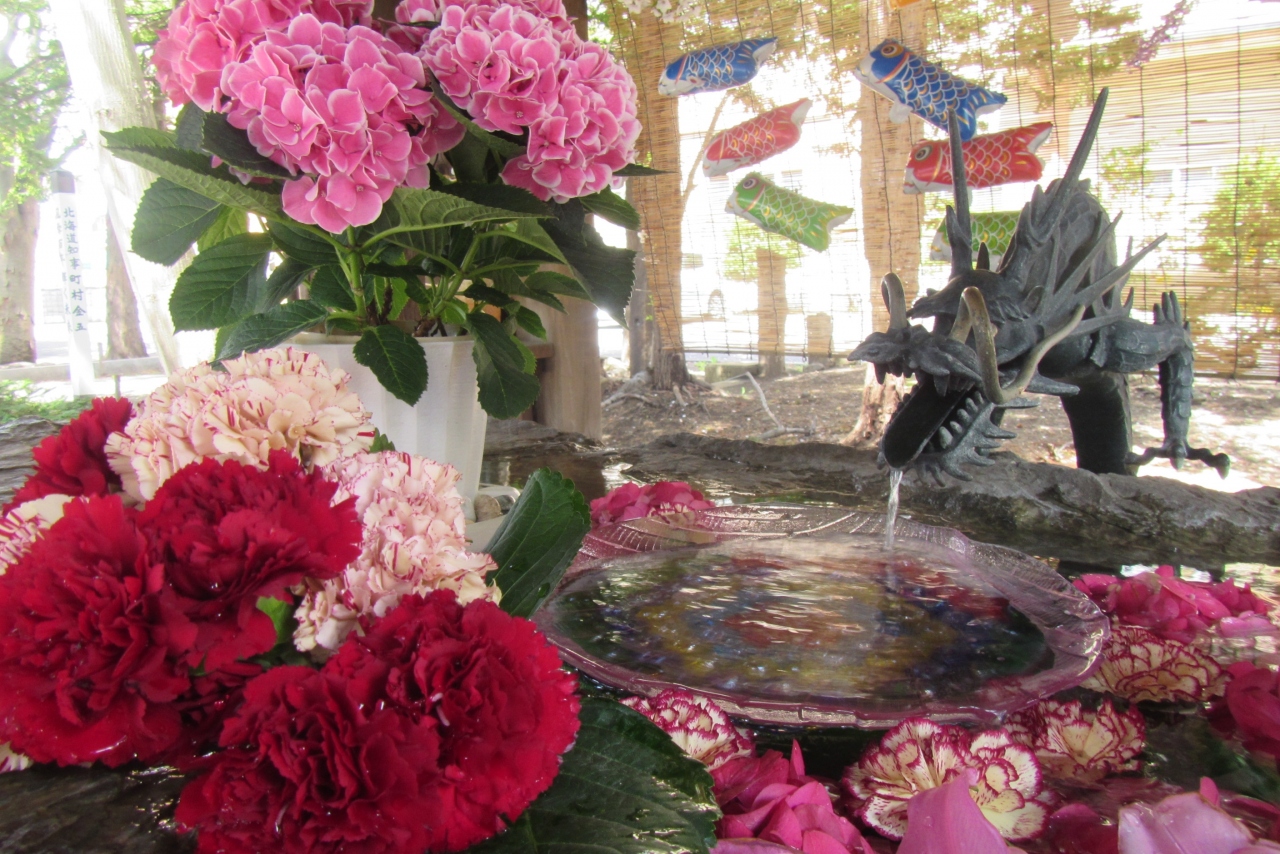 令和4年(2022年)4月29日~5月5日、札幌市およびその近郊の主要な神社で第3回の花詣が催され、境内各所に花飾りや花手水、特別御朱印の頒布などが行われました。
