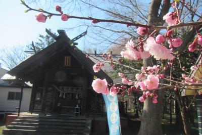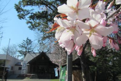また、ちょうど桜の季節で、境内に何本か桜(参道横に一部、梅)が咲いていました。