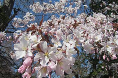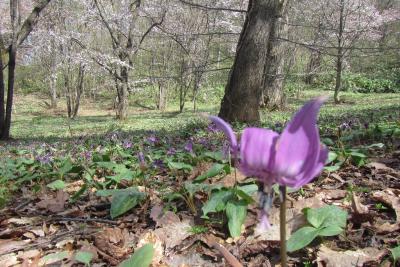 一方、桜はちょうど満開を迎えていて、桜とカタクリ同時に楽しむのは、なかなか難しいようでした。ただ、他にもニリンソウがたくさん咲いていたり、オオバナノエンレイソウが咲き始めていたり、あるいはヒトリシズカが咲き始めていたりして、いろいろな山野草を楽しむことができました。
