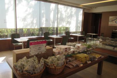 喫茶コーナーは売り場とは仕切りが無く、4、5つほどのテーブル席があって、北海道大学の敷地に面して、広いキャンパスを眺めて寛ぎながら、売り場で買ったお菓子やケーキなどをいただくことができます。