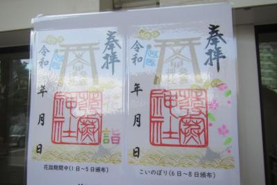 花詣期間中は、花手水や花詣特別御朱印の頒布などが行われましたが、発寒神社の特別御朱印は5月1日から5日の花詣特別御朱印が更に、3日~5日は国旗印付き、加えて6日~8日もこいのぼりバージョンとしても頒布され、他の神社に比べて特別感が増していました。