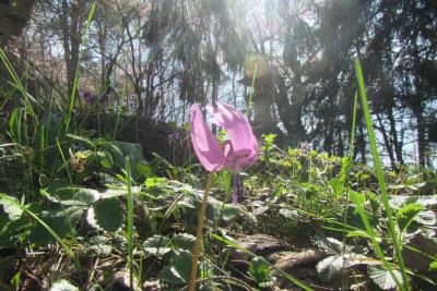 なお、カタクリの名所でもあるようで、近くの男山自然公園には及びもつきませんが、麓の辺りに群落があるほか、山中の草むらでちょこちょこと生えているのを見かけました。カタクリは4月下旬辺りが最盛期のようで、5月に訪れた時はしおれているものがほとんどでした。
