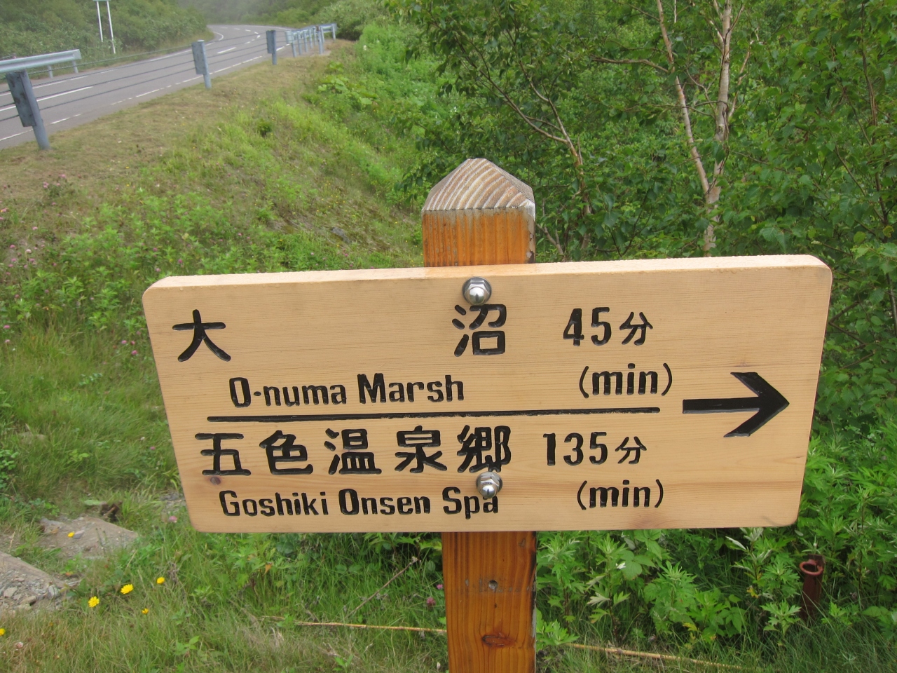 ニセコ方面からパノラマライン(道道66号線)でくると、神仙沼の手前で右側に大きな草原が見えます。これが大谷地湿原。道路が湿原と分かれて左カーブをきりそうになるところで、湿原に入っていく道があり、路肩には大谷地湿原の看板も見受けられます。湿原の中の道は木道になっていて、ときどき小川を越えたりして湿地の草原を進みます。500~600mほど進むとやがて木道は途切れ、傾斜のある山道となります。このまま進むと大沼、そしてイワオヌプリの横を抜けて五色温泉へと続きます。湿地を経験したいなら神仙沼の手前にもありますし、湿地内はそれほど展望が開けないので、パノラマラインから俯瞰した方が壮観で良いと思います。神仙沼から五色温泉まで山歩きを楽しみたい場合は、湿原を突っ切る山道を利用してもよいかと思います。登山靴が必要です。
