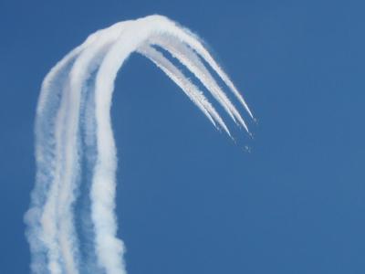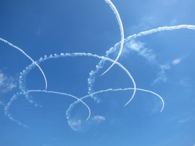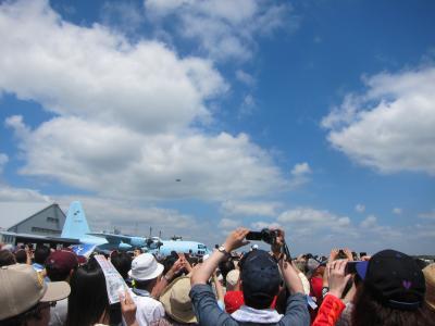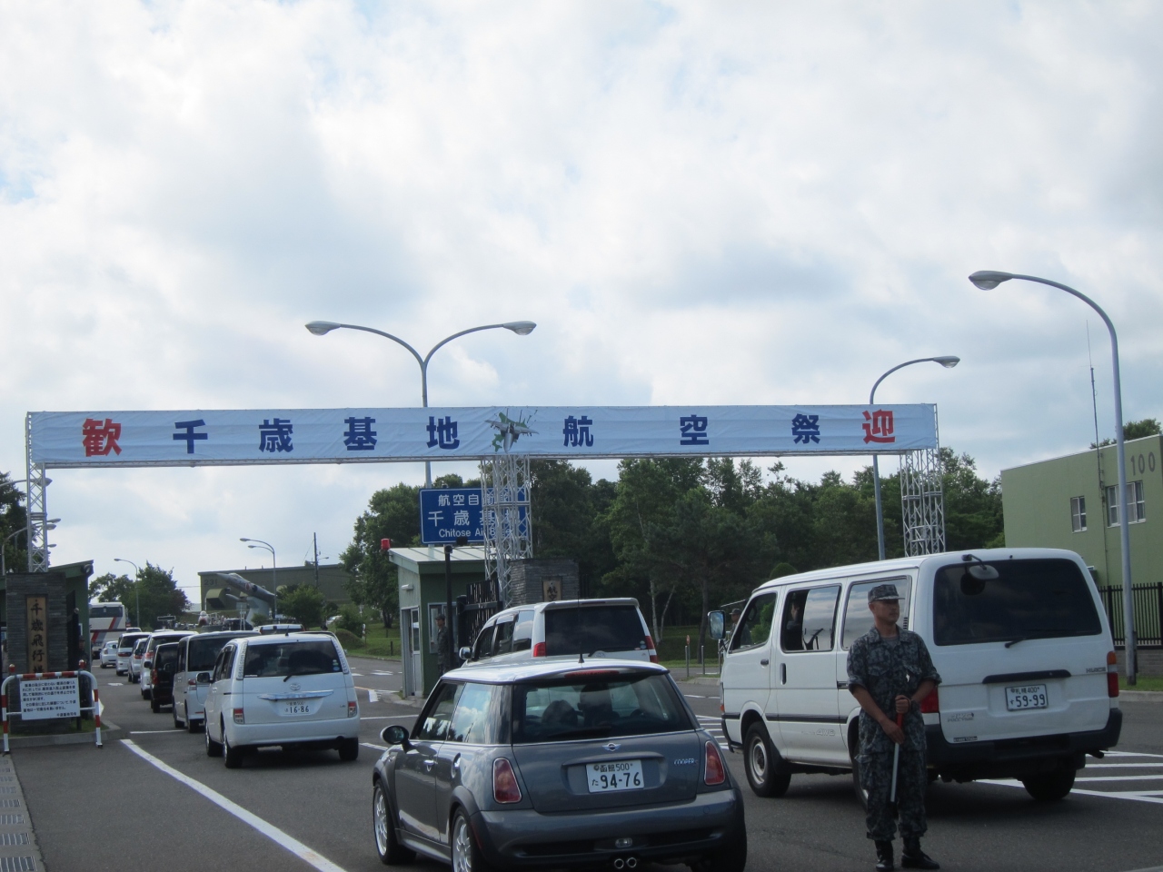 2013年は8月4日の日曜日に開催されました。2012年より1万人多い入場者4万人との話しですから、広い会場もさすがに人がいっぱいです。基地とJR千歳駅の間は道なりに2kmほどありますが、駅の東口から200円でシャトルバスが運行しています。しかし、バスに乗るのに20分以上かかった上、1kmも進まないうちに大渋滞に巻き込まれて動かなくなってしまいました。前を見ると、はるか先まで止まったまま。各バスからは次々と乗客が降りて歩き出しました。結局、会場に到着したのは既に飛行が始まった9時20分過ぎ。最初から歩いた方が早かった…。後で聞いた話しでは、自家用車で来られた方は基地内の駐車場に止めるのに、この時間から半分以上のショーが終わった昼ぐらいまでかかったとのことです。ショーは混合飛行、模擬滞空射撃、各種飛行の様子を見ることができました。過去にも観覧したことがありますが、米軍機の飛行や救難訓練など少し規模が縮小されている感じがしました。催事広場のウィンナーややきそばなどの各種屋台は20~30mの長い行列ができ、人気店では30分以上並ぶはめに。Tシャツやキャップ、文房具など各種自衛隊グッズも売っていました。午前中の飛行はそれぞれ短い時間で終わってしまったのですが、午後のブルーインパルスの各種編隊飛行は、見事な飛行を30分以上にわたって眺めることができました。滑走路に近いメイン会場は結構広かったのですが、その時ばかりは観客総出。人でごった返していました。当日は場所取りも含めて長時間、炎天下にさらされます。各種日焼け日よけ対策や水分補給、脚立や椅子の準備が必要です。飲み物はメイン会場にいくつか屋台が立ち並び、冷えたジュースを購入できます。轟音の方は、人にもよりますが、耳栓などは要りませんでした。