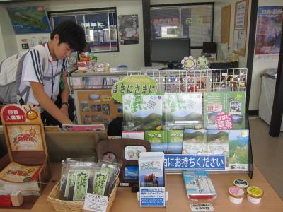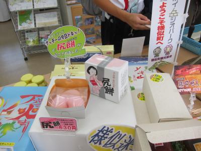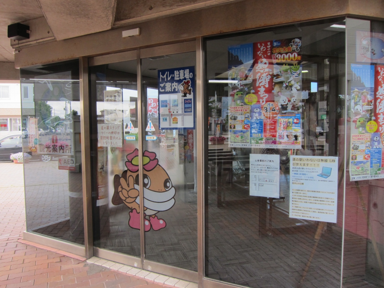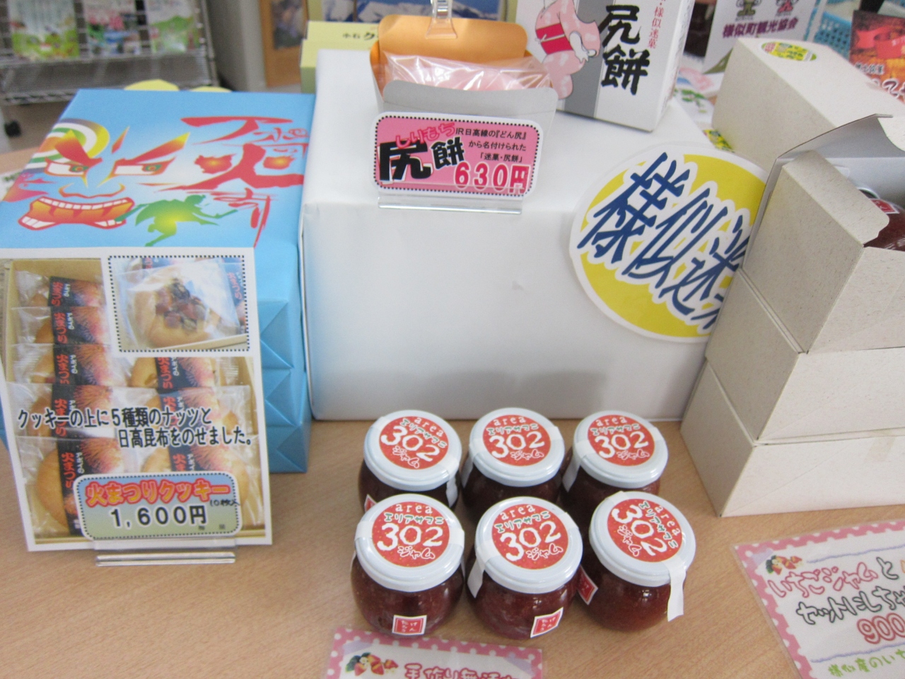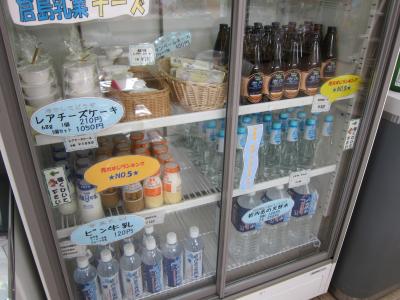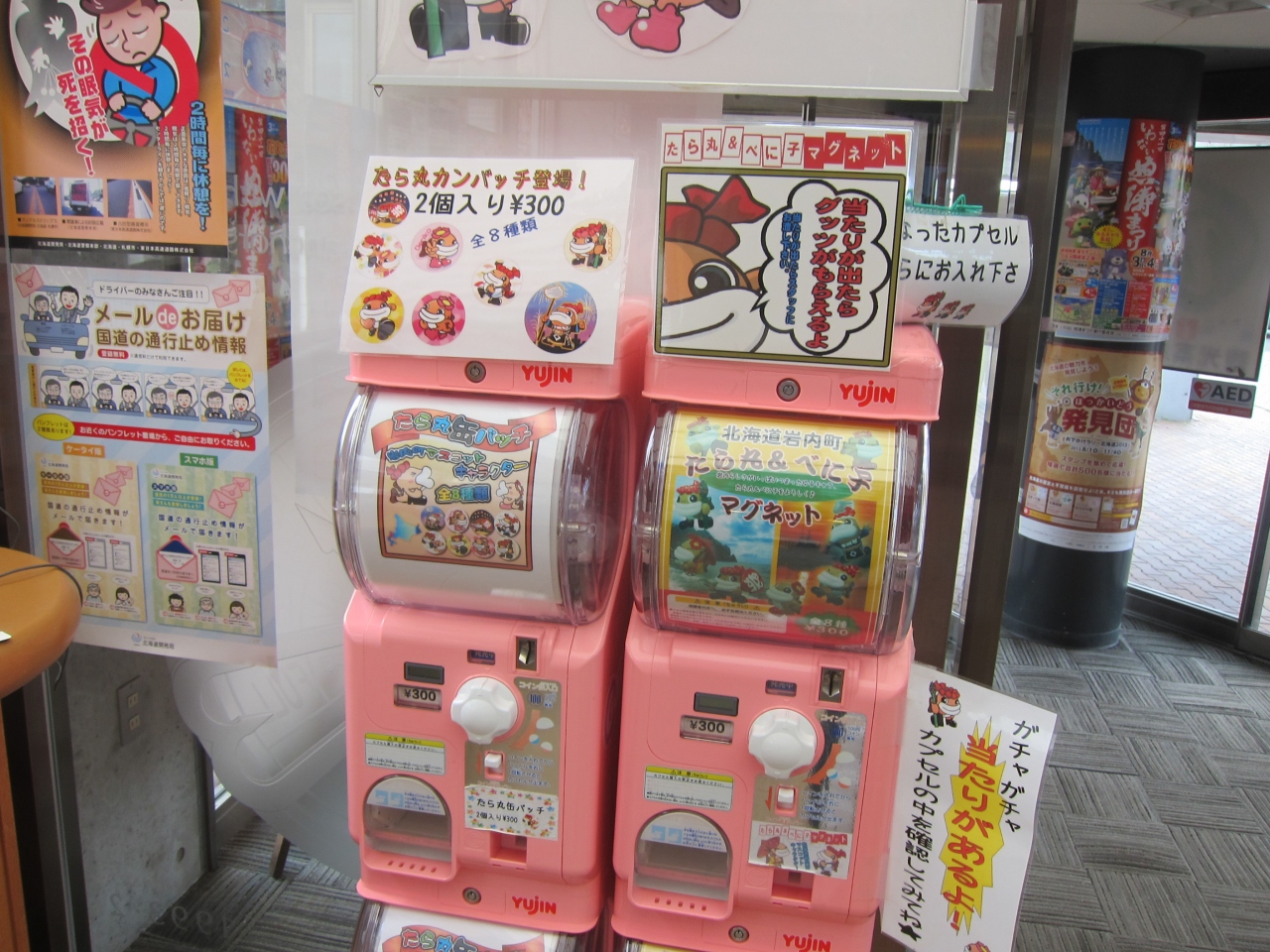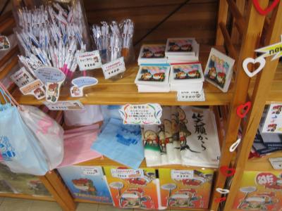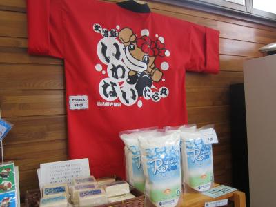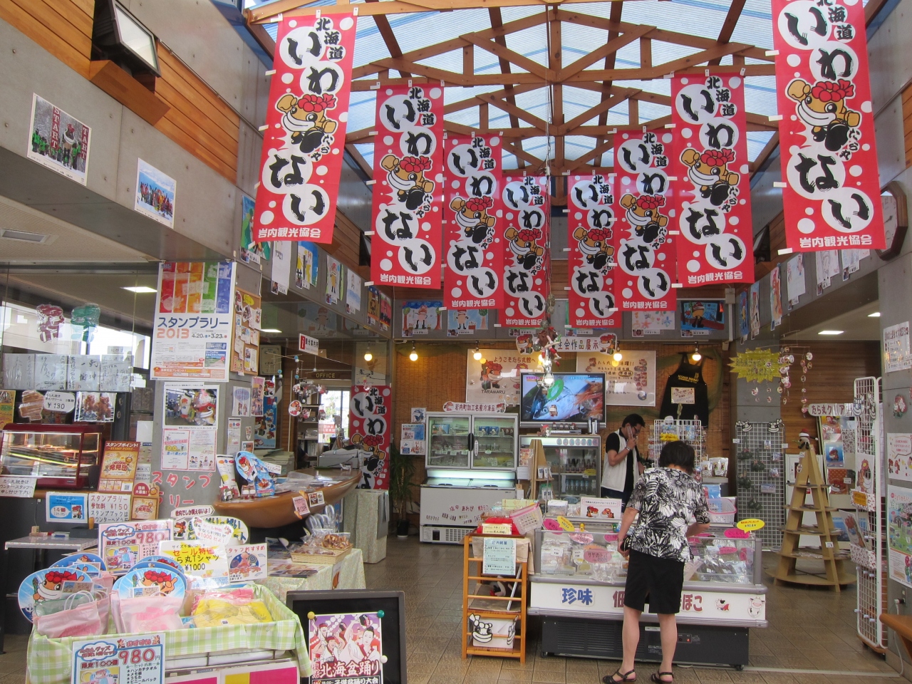 岩内のマスコットキャラクター(ゆるキャラ?)、たら丸のグッズがたくさんありました。文房具、Tシャツ…もちろん地元の特産品も揃っています。海産物加工品(ニシン、あわび、たらこの製品など)、地元、倉島乳業の各種製品(チーズケーキ、カマンベールチーズ、牛乳など)、素朴なところで弁慶の刀掛岩にちなんだ刀掛もなか、刀掛羊羹、どら焼き、更に、変わったところではダチョウの卵(\2,000円),青い卵アローカナ(配合飼料を使っておらず、殻は固いが栄養価がとても高いそうです)を販売していました。岩内港や町の中心部が近く、札幌や各地へのバスターミナルも隣接するアクセス良好な場所にあります。岩内でのおみやげ調達にはうってつけの場所です。