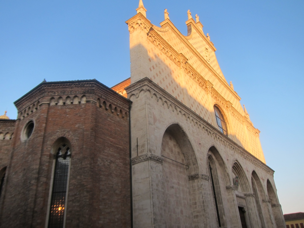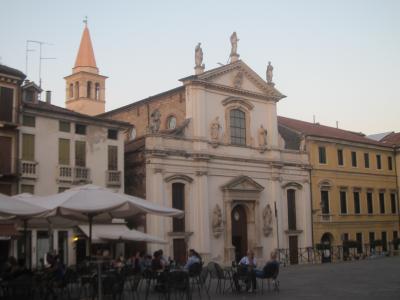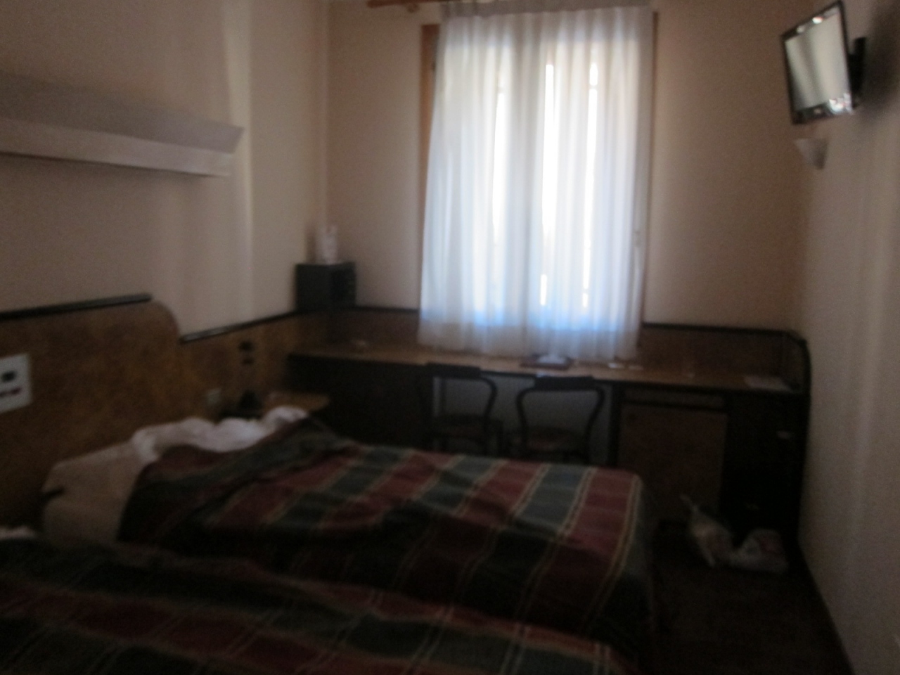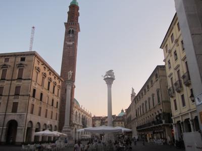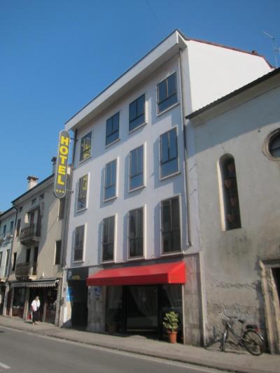 ヴィチェンツァの駅から500mほど行ったところにあります。駅から正面に大通りがありますが、そこではなく、左にそれた通りを公園の縁に沿って進みます。途中、お店もあるので物の調達に便利です。なお、レストランやファストフード店は正面の通りとホテルの通りが交差するところや、アンドレア・パッラーディオ大通り沿いにあります。バジリカの辺りではアイスクリーム屋などもありました。ホテルは外観とうってかわって部屋などの内装は新しく整備されています。部屋はエアコンもあり、少し広めな感じでした。接客対応も丁寧で親切。チェックインの際、簡易マップを広げて街の観光案内までしてくれました。お店の情報なども教えてくれました。ヴェネツィアで宿をとろうと思ったのですが、どこも人気で満室。その上、割高。ヴェネツィアを敬遠して、普通列車でも30分程度のこの街にやってきましたが、ちょっとヴェネツィアを外すだけでこんなに条件が良いのかと驚きです。日曜日で街では外のカフェテラスで夕食をとる人たちの楽しげな談笑が響いてきます。ヴェネツィアの観光客たちの戦争のような喧騒を離れ、夏の夕暮れの落ち着いてゆったりとした雰囲気と相まって、優雅な時間を過ごすことができました。