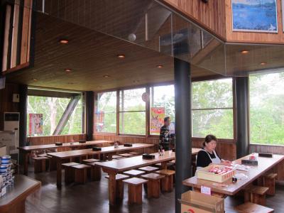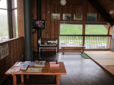 5月の連休のころ~10月の夏季、9時から17時まで営業とのことです。ニセコパノラマラインの道道66号線の道路脇に神仙沼最寄りの駐車場と、このレストハウスがあります。神仙沼へは、道を挟んだ向いに木道の入口があり、1kmほど進んだところにあります。レストハウスですが、山小屋風の2階建てで、1階は食堂とお土産屋、2階は展示・休憩スペースになっています。お土産は、地元共和町の饅頭やあんこ餅など素朴な名産品数種類が並びます。神仙沼を銘打った地酒も販売していました。2階では椅子に座り、神仙沼や共和町の観光案内の展示パネルの説明を読みながらゆっくり休憩できました。1~2畳のたたみスペースもありました。レストハウスは標高750mあまり。山の上なので天気もよく変化します。沼観光の途中でちょっと天候が悪化したときに利用すると、とても便利です。