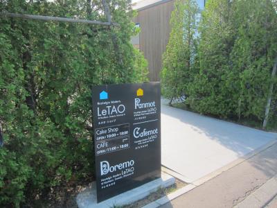 発祥の地、小樽に多くの店舗を持つLeTAO。千歳には空港内と、ここ、空港北の街中にあります。千歳市役所の1本南の通り沿い、小さなせせらぎ、真々地川との交点あたりです。商品の販売店舗とカフェがあり、相対して建っています。店舗の方は各種ケーキやチョコレート、パンなどがありました。行った時にはちょうど、南国フルーツタルト(\1,400円)というのがありました。また、チョコレートでは個人的にはホワイトレアチョコレート(\840円、「スタッフオススメ」)という白ブドウのワインの入ったチョコレートが気になりました。あとはカフェでゆったり。休日の午後に行きましたが、入口で2~3人の順番待ちや旬のケーキセットでは一番人気の「常夏パイ~トロピカルアイス添え」やマンゴーショコラの売り切れなどがありましたが、次点で頼んだメロンショートもメロンの風味をうまく生地とクリームに取り合わせていておいしかったです。食後、そばを流れる真々地川のせせらぎを散策できるのも千歳店のポイントだと思います。