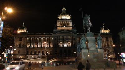 プラハの繁華街です。デパートや飲食店が軒をつらねます。周辺の観光地や交通アクセスがよいので、この近くにホテルを取りました。国際列車が深夜12:00にプラハ本駅に到着したので約500mほどの広場まで歩きました。駅からの道は少し暗かったのですが、広場に着くと明るく、日本で言えば夜の六本木みたいな感じでしょうか。黒人の方たちがたくさん大はしゃぎしていて通りはものすごい人手です。お祭りや祝祭日ではなく平日です。アイスクリーム屋さんの屋台やいくつかのファストフード店などが営業していて賑やかでした。ただ夜の一人歩きは掟破りです。そそくさと予約したホテルを探してチェックインです。ハラハラドキドキの中、国立博物館のライトアップとヴァーツラフの騎馬像がきれいでした。