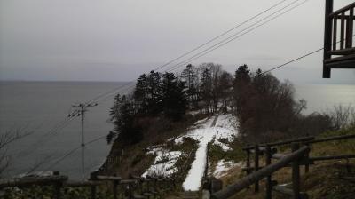 JR室蘭本線の大岸駅と礼文駅のちょうど中間にあります。海岸に突き出た高台の岬でアイヌの砦としては、最高のロケーションだったのでしょう。20~30mくらいでしょうか、チャシ跡までの急な階段を登ります。チャシ跡からは曇っていたので展望もあまり利かなかったのですが、晴れていたら噴火湾が見渡せたのでしょう。真下を道道609号線が貫通しており、駐車場もあります。近くを通る室蘭本線をときどき列車が行き来するのですが、JRの駅からだと1~2km歩くことになり不便です。