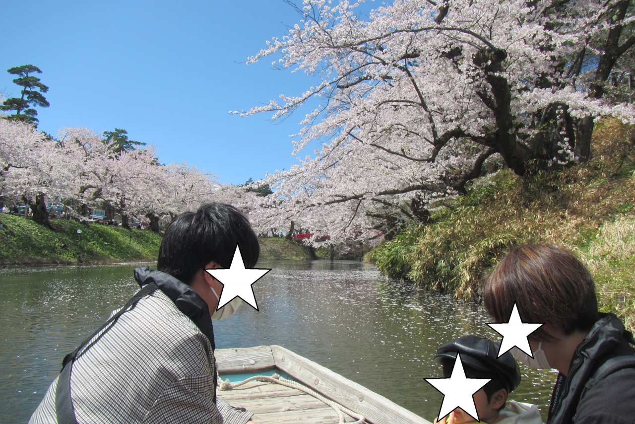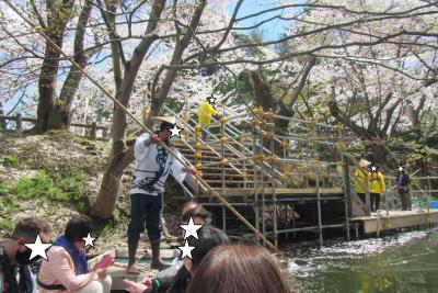 乗船料金¥1000円。乗船時間は約20分で、比較的距離は短いですが、お堀の中の水面ギリギリの低い位置から、普段とは違った目線で景色を眺められます。毎年、4月下旬から5月初めまでの弘前さくらまつりの期間のみに運行されているようです。