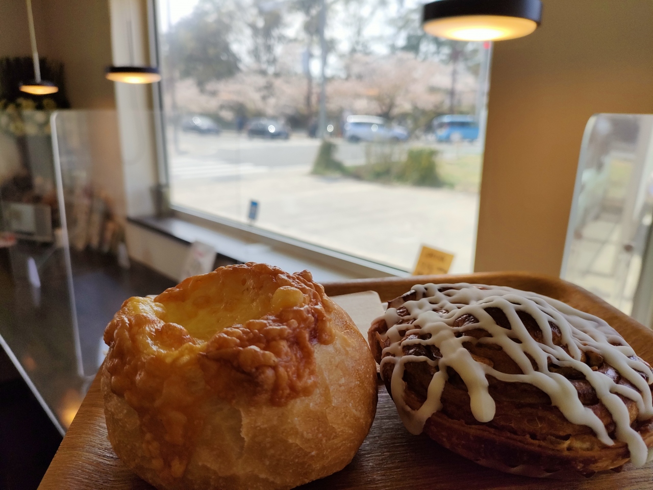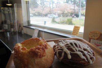 弘前さくらまつりの時に周辺散策の途中で寄りました。イートインスペースのある焼き立てパン屋さんです。同時期、弘前公園内の飲食エリア(屋外)で、公園内の屋台で買ったものを食べることもできますが、風があったり、寒かったりする時、建物内で食べられるのはありがたいです。なお、他にも公園内外のカフェ(公園内の北の郭カフェ他、周辺の津軽藩ねぷた村、カフェきたもん、可否屋葡瑠満、スターバックスコーヒーなどなど)もありますが、パンを食べたい時やちょうど公園の北東角に来ている時の利用に便利でした。小さなパン屋さんですが、お店の前に4、5台分の駐車スペースに、店内には5、6席程度の椅子席がありました。