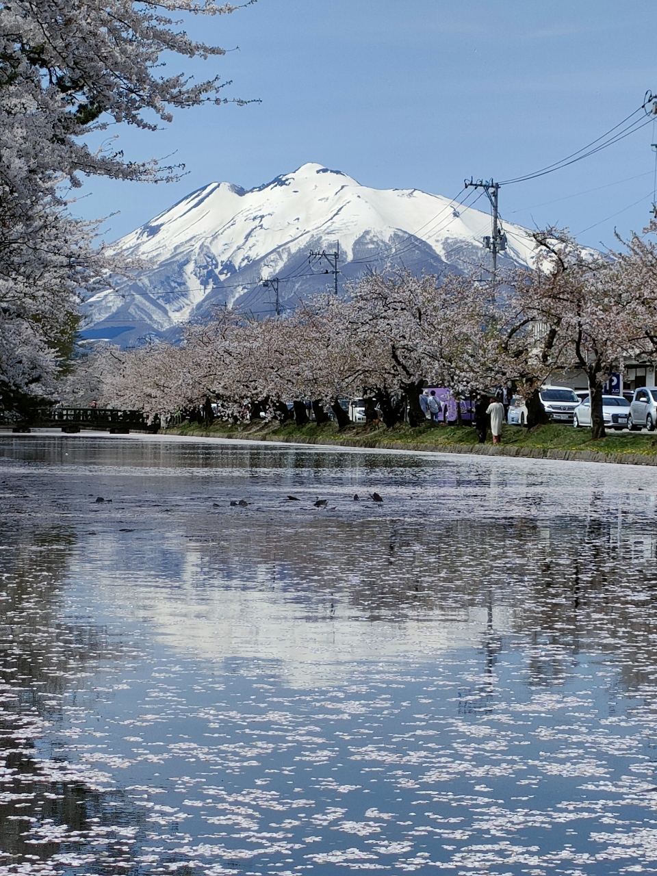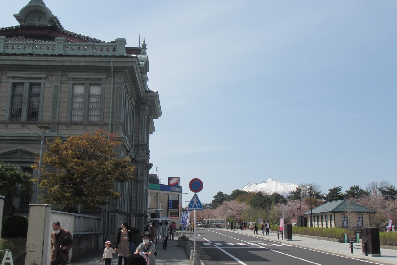 桜並木の外濠の向こうに岩木山が見えます。道路沿いの桜並木に電線や電信柱が見えてしまうのが玉にキズですが、カメラアングルを慎重にとれば隠れるのかな? 中央通りや下土手町商店街の通りのように電線を地中化してくれると良いな。- 旅行時期