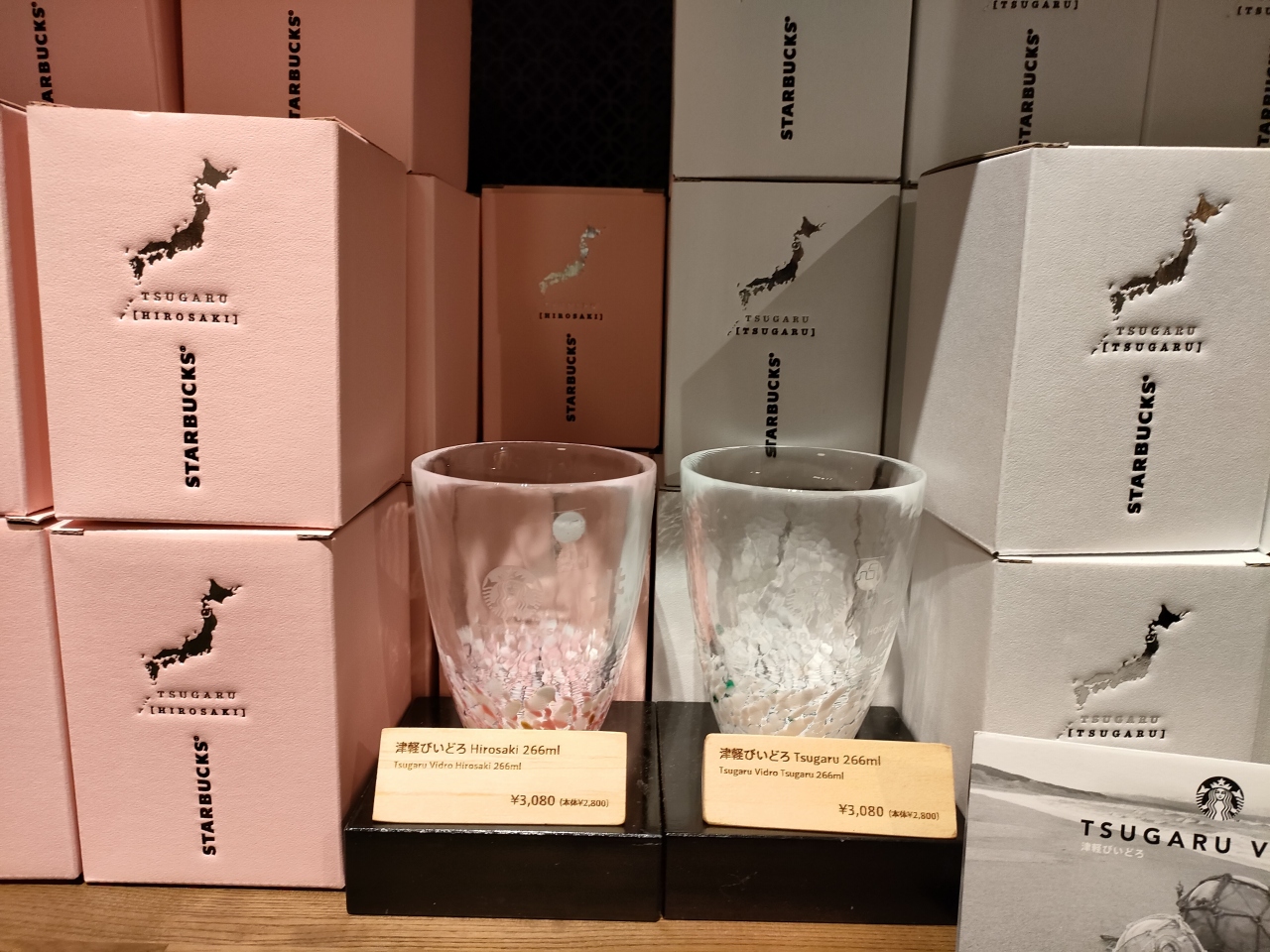 青森県内何カ所かにあるスタバにあるスタバということで、「津軽びいどろ」グラスを限定(弘前公園前店以外にもヒロロ、さくら野、青森中央、ラビナ、ELMなど)で販売していましたが、お値段が¥3,080円もしてちょっとお高めでした。- 旅行時期