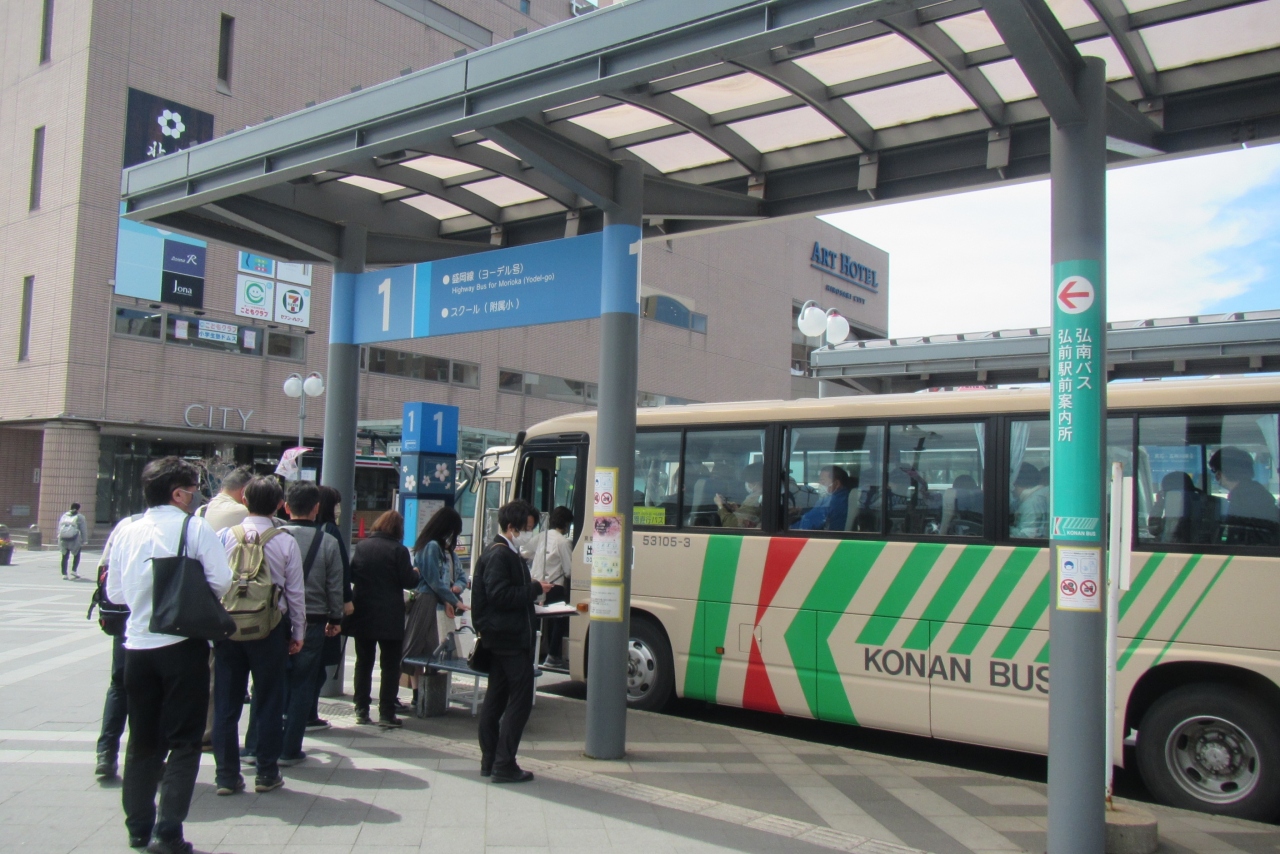 特にさくらまつり期間中は、弘前駅出口を出てすぐの1番のりばから、同じく100円の公園直行バスがこちらも10分おきに出ていて、利用しやすかったです。