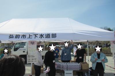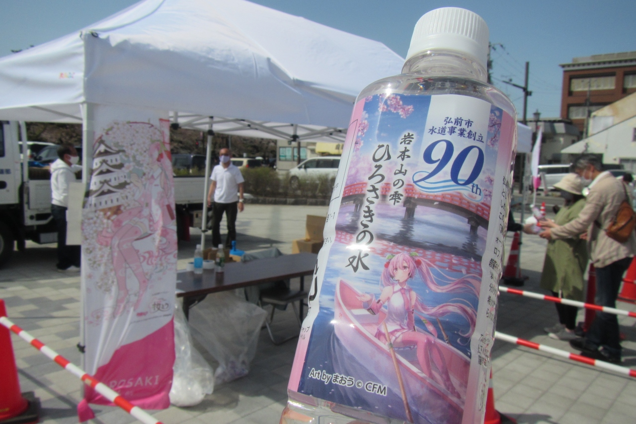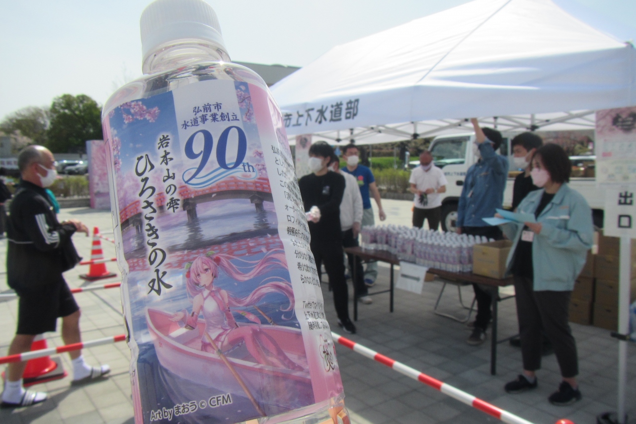 さくらまつり期間中のある休日(2022年4月23日・24日)に訪れたところ、”ひろさきの水”の無料配布が行われていました。