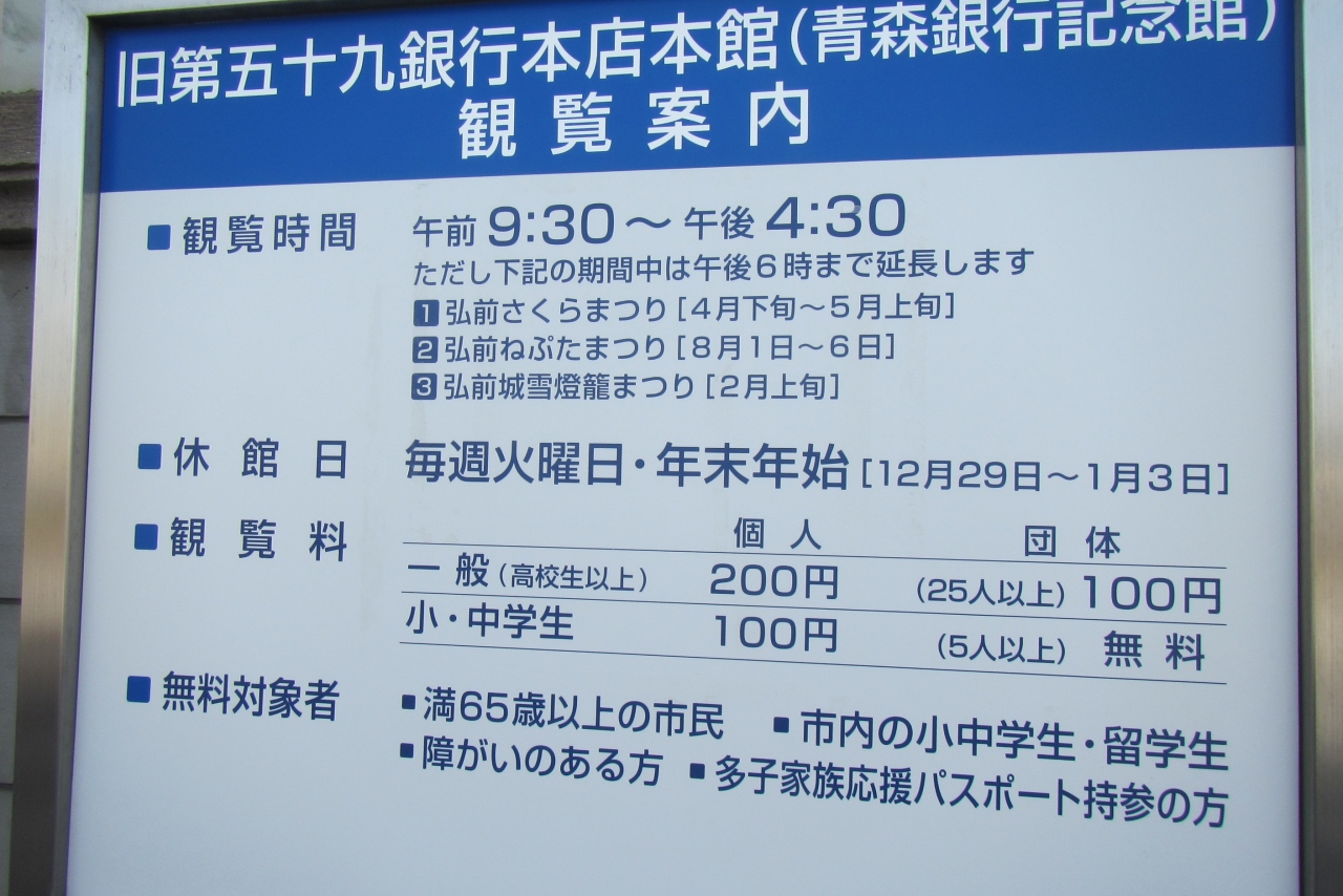 弘前公園近く、公園に向かっている途中、青森銀行記念館(旧第五十九銀行本店本館)の立派な建物が見えたので立ち寄ってみました。
