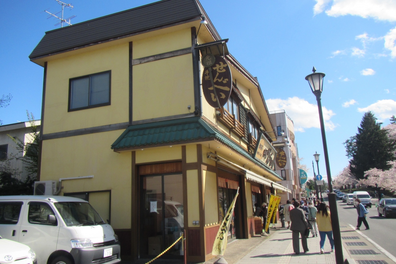 弘前公園の北東側、外濠の通り沿いにあり、公園散策の途中で寄るのに良いです。小山せんべいは弘前駅のアプリーズ1階や新幹線の新青森駅、青森空港内の特設売り場など、便利な場所にもありますが、やはり本店で買うのが良いと思い、訪れてみました。なお、お値段は同じです。