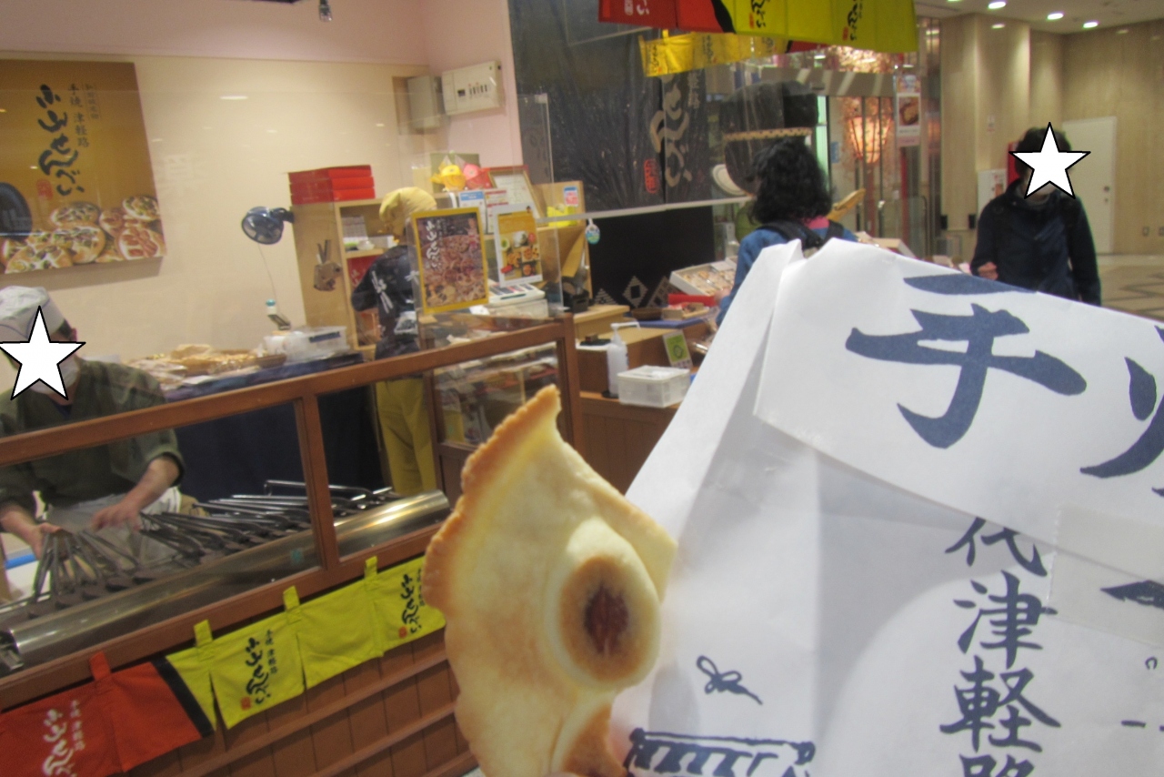 豆がいっぱい散りばめられた美味しいせんべいを売っていて、小山せんべいの本店は弘前城の外濠の通りに面したところにあり、お城散策の途中で寄ってみてもよいですが、そこまで歩くのが大変だったり、時間が無かったりする時にこちらの、弘前駅の駅ビル(アプリーズ)に入る小山せんべいを利用すると便利です。