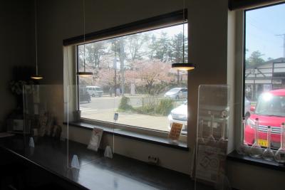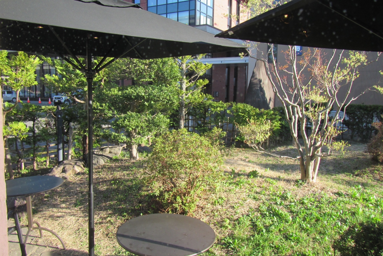 弘前城の南側に位置し、弘前公園に面しているということで、桜の景色を期待して訪れましたが、お店の北側の部屋の窓越しに駐車場や道路を挟んで外堀の桜が見えるものの、ここではどちらかと言うと、店内の建物の雰囲気や庭の眺めなどをコーヒーとともに味わうのが良いお店と言えるでしょう。