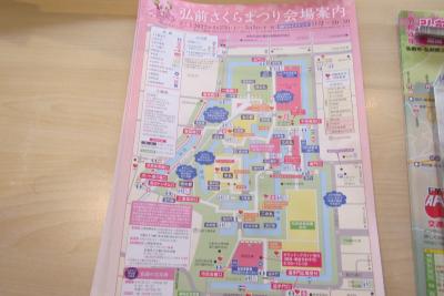 (弘前城内の観光地図は便利。アップルパイのお店案内地図は食べ歩きに良さそう。)
