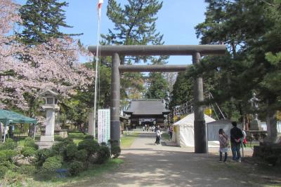 桜はやや散り気味ですが、毎年4月28日・29日に例大祭(献燈みたま祭り)があるそうです。- 旅行時期
