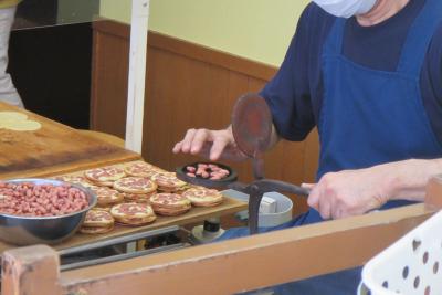 弘前さくらまつりの時に訪れたところ、建物入口にあふれ出しているお客さんを見て、これは入店は無理かなと思いきや、意外とテイクアウトのお客さんが多く、席が幾つか空いていて店内でいただくことができました。