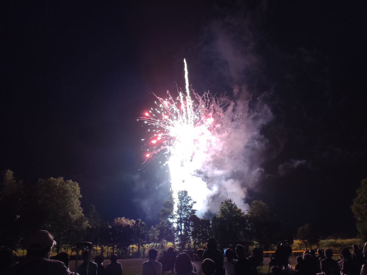 花火は、神社の例祭に合わせてそれよりも前の日に行われ、2022年は8月13日の19:30~20:00くらいで、公称値は5000発とのことですが、札幌の豊平川の4000発を超えるほど打ち上がっていた感じはしませんでした。しかし、豊平川のものより打ち上げ場所に近づくことができ、間近で見た場合、迫力はかなりありました。