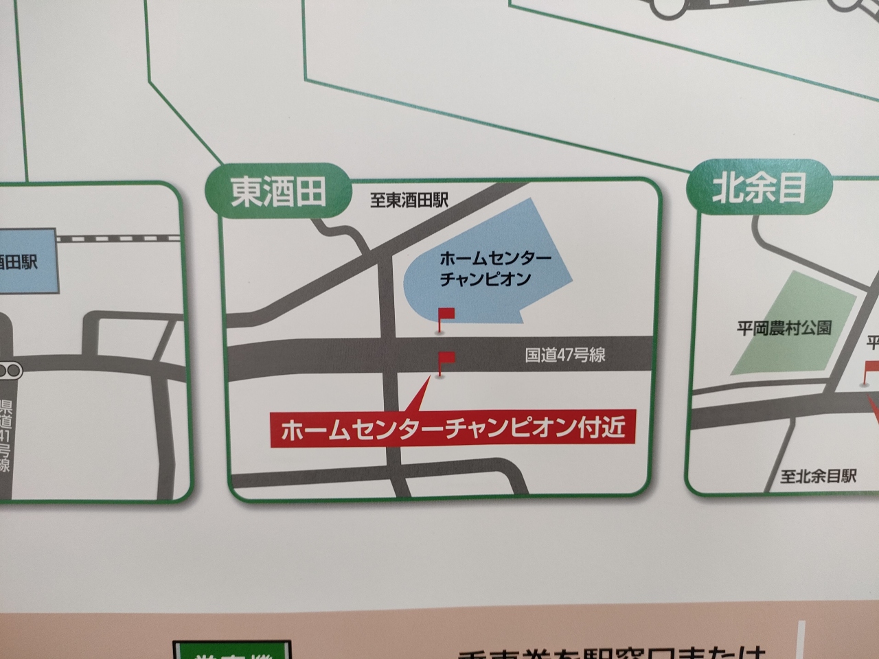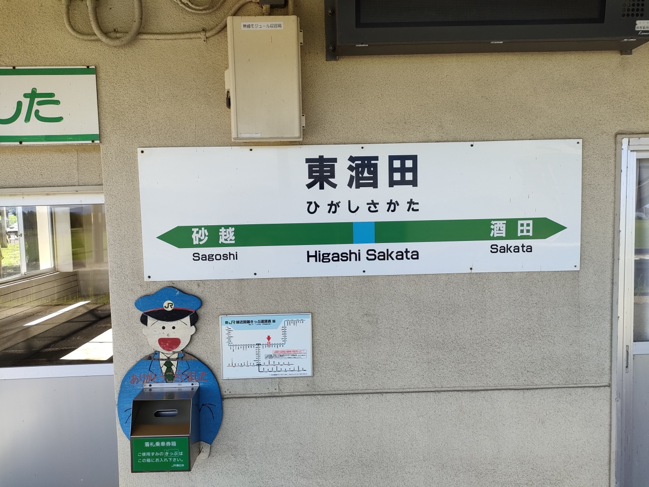酒田駅から鶴岡・新津方面に1駅隣にある駅で、無人駅です。辺りは田んぼで、駅前に数軒の民家があるくらいです。ホームから眺める田園風景と鳥海山の眺めが長閑で良い駅です。