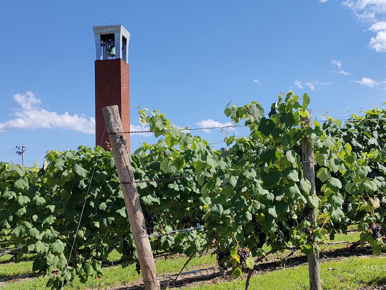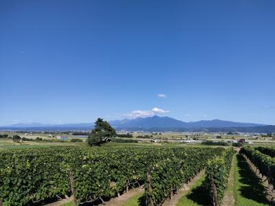 富良野盆地と十勝岳連峰を見渡す丘の麓に、ブドウ畑に囲まれるようにあって、六花亭の店舗の中でも一番雰囲気の良い環境にある店舗ではないでしょうか。