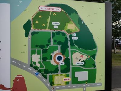 キャンプエリアは、道路側の公園入口から3、40m離れた奥の木陰の辺りで、テントを張れる場所は紐で囲われています。平時はあまり利用者を見かけませんが、夏場の週末や、特に沼田町で行われる夜高あんどん祭りの日などは、10~20人程度のキャンパーがいて賑やかでした。