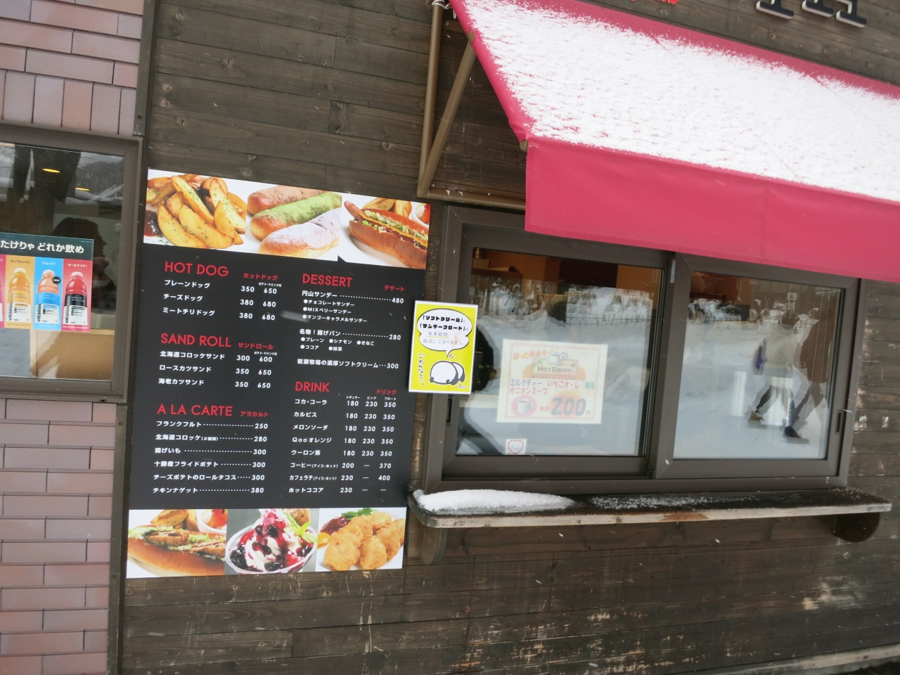 冬季はソフトクリームやサンデーフロートはやっていないとのことでした。ただ、いちごオ・レやミルクティー、オニオンスープなどの温かい飲み物が取り揃えられていました。