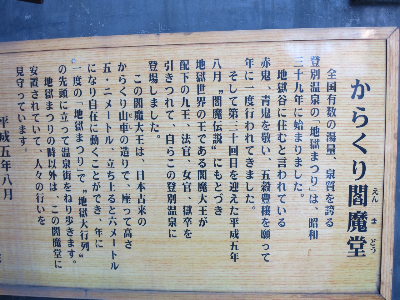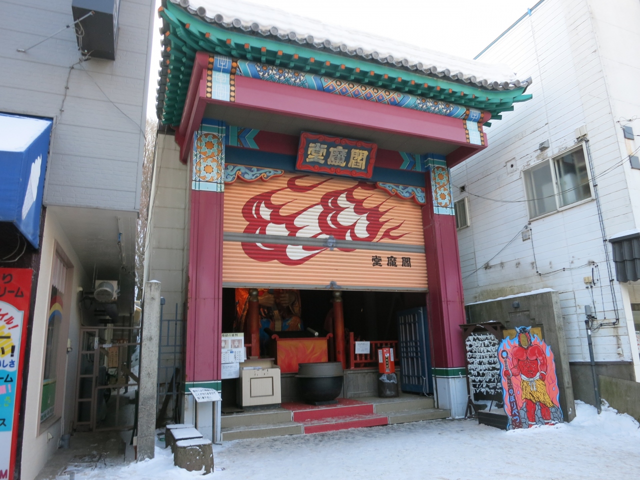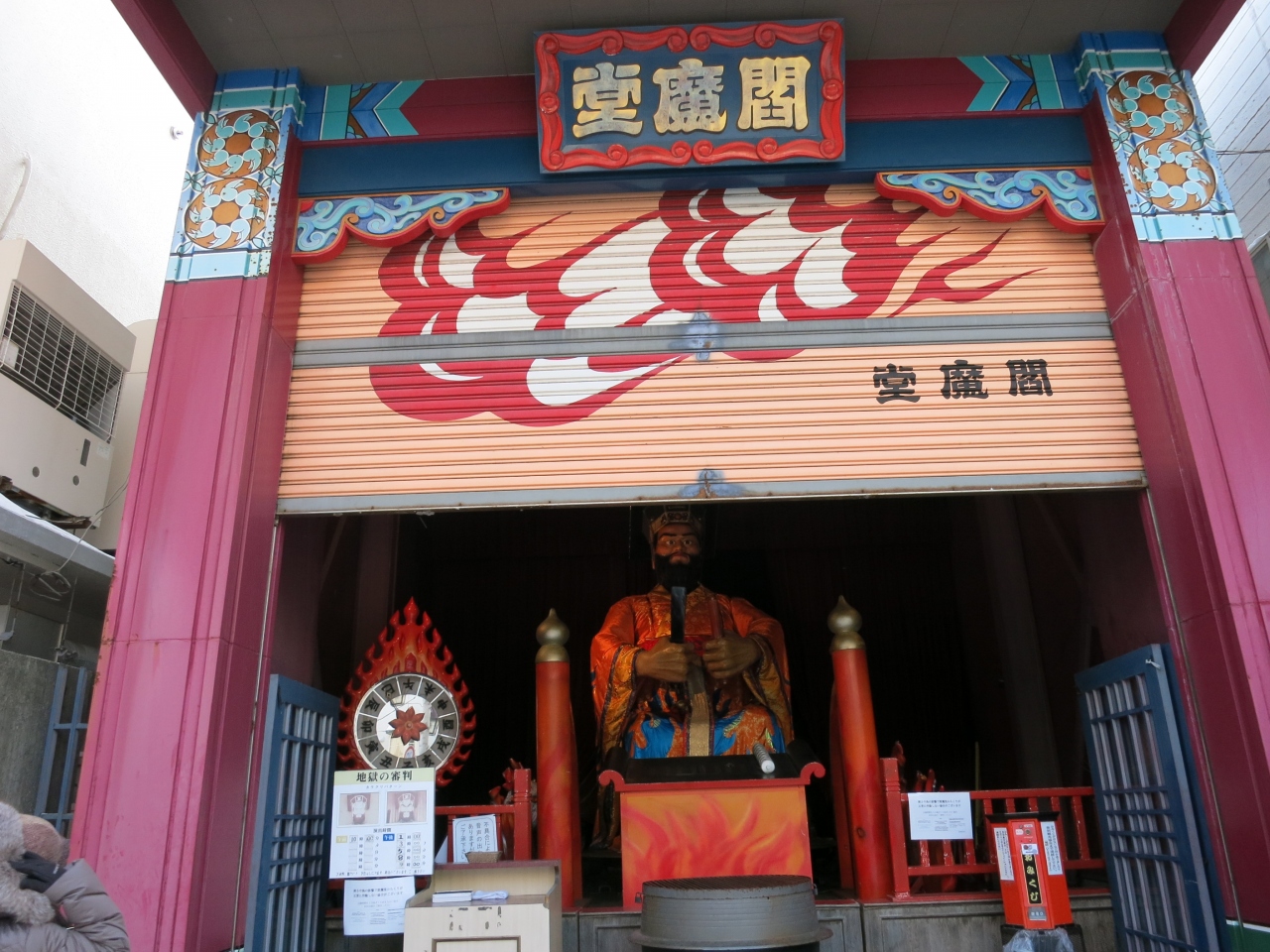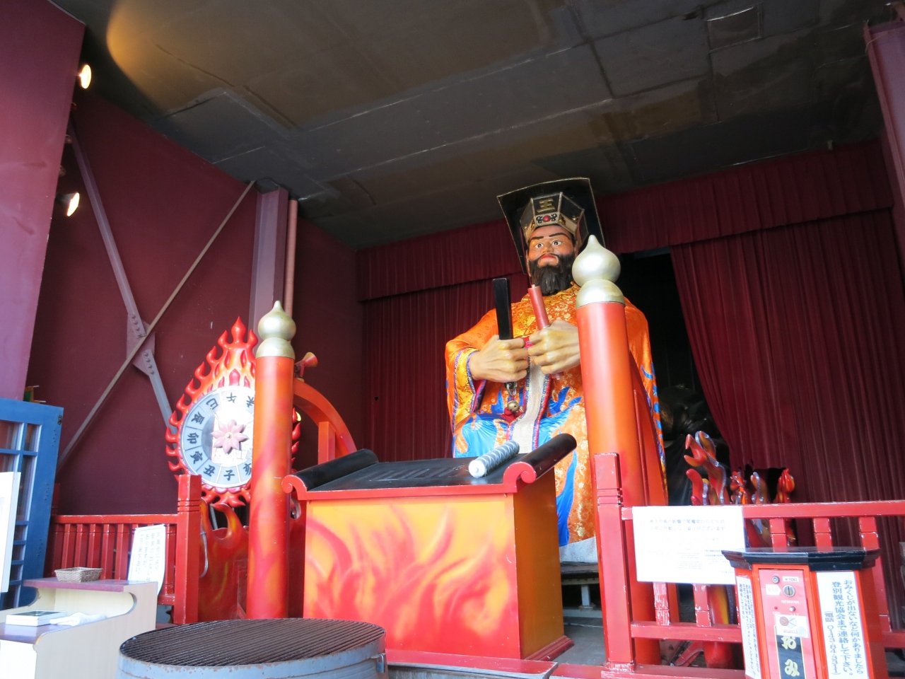 どのようになるかは見に行ってのお楽しみとして、決まった時間にしか動きません。まるで近くにある泉源公園の間欠泉です。ただ、こちらは親切にも動く時間が表示されています。訪れた時は、朝の9時前に扉が開いてから、10時・13時…とほぼ2時間おきにパフォーマンスが行われるとのことでした。第一滝本館やセブンイレブン、パチンコ屋やおみやげ物店などが並ぶ通りにあります。用足しのついでに時間が合えば見ていくとよいのではないでしょうか。1回100円のおみくじもありました。